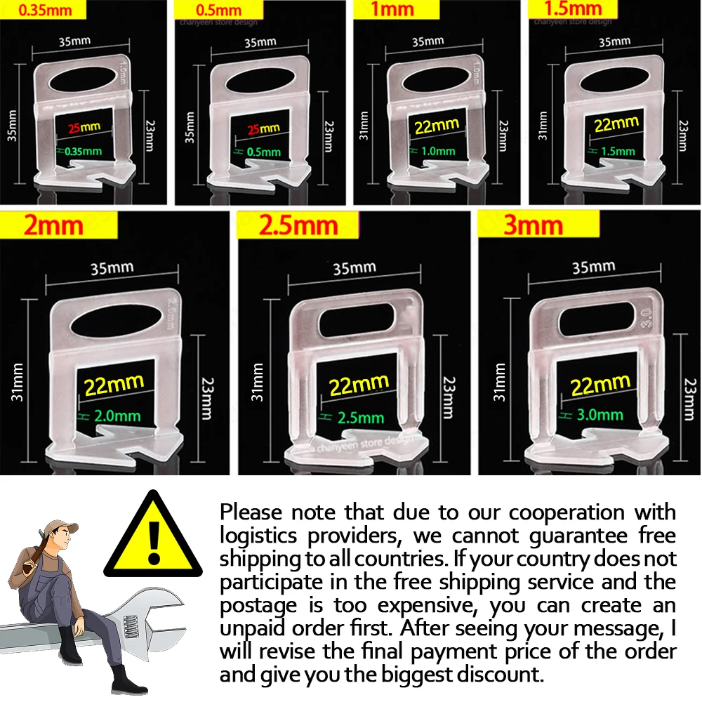 Achieve perfectly aligned tiles with this set of 1000 PE plastic leveling system clips, spacers, and straps designed for wall and floor tiling projects. Crafted for durability and precision, these supports prevent tile movement during curing, ensuring a flat, professional finish. Easy to use with your preferred cement or tile adhesive, they help speed up installation, reduce fatigue, and maintain consistent horizontal alignment for a seamless look. Ideal for home improvement and construction enthusiasts, these high-quality, transparent spacers are suitable for various tile thicknesses from 1mm to 3mm. Visualize your flawless, evenly spaced tile surfaces with ease using this reliable leveling kit.