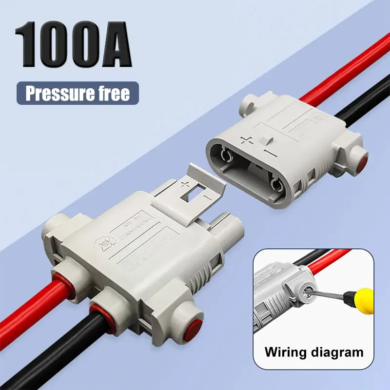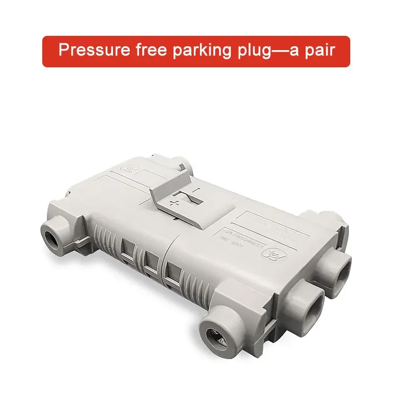 Designed for high-current truck parking air conditioning systems, this 100A/24V waterproof male and female connector features a durable construction built to handle up to 100 amperes and 24 volts. Its robust, pressure-resistant design ensures secure, reliable connections even under demanding conditions. Crafted from high-quality materials, the connector includes tactile contact slots, mounting extensions, and a rounded ingress point for cables, all in a sleek, light gray finish with a smooth matte surface. Certified RoHS, it offers versatile configurations such as copper terminals, fuse boxes, and waterproof plug sets in various color options—ideal for ensuring safe and dependable power transmission in industrial environments.
