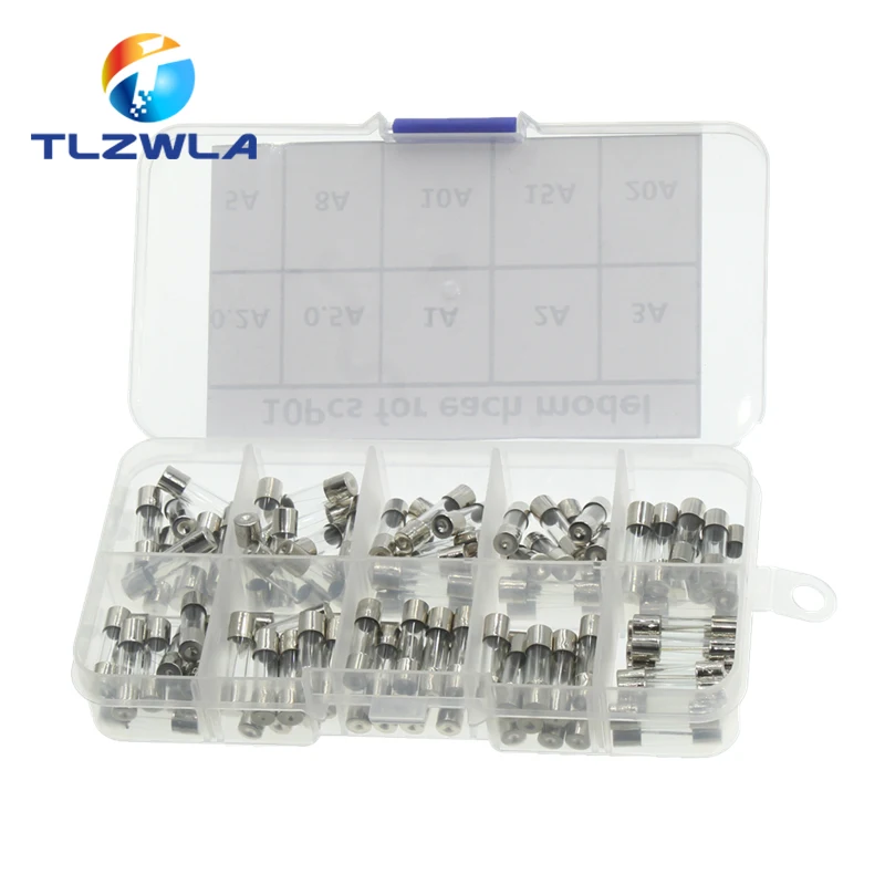 Keep your electrical systems protected with this comprehensive set of 100 high-quality, fast-blow 5x20mm glass tube fuses, rated from 0.2A to 20A. Each fuse features zinc end caps and a transparent glass body, ensuring durability and easy inspection. Suitable for automotive applications, these fuses have a high breaking capacity and meet IEC safety standards with CE certification. Organized in a sleek, transparent plastic case with dedicated compartments for each rating—0.2A, 0.5A, 1A, 2A, 3A, 5A, 8A, 10A, 15A, and 20A—they facilitate quick identification and replacement. Ideal for maintaining reliable electrical protection, this set helps you stay prepared for any electrical needs.
