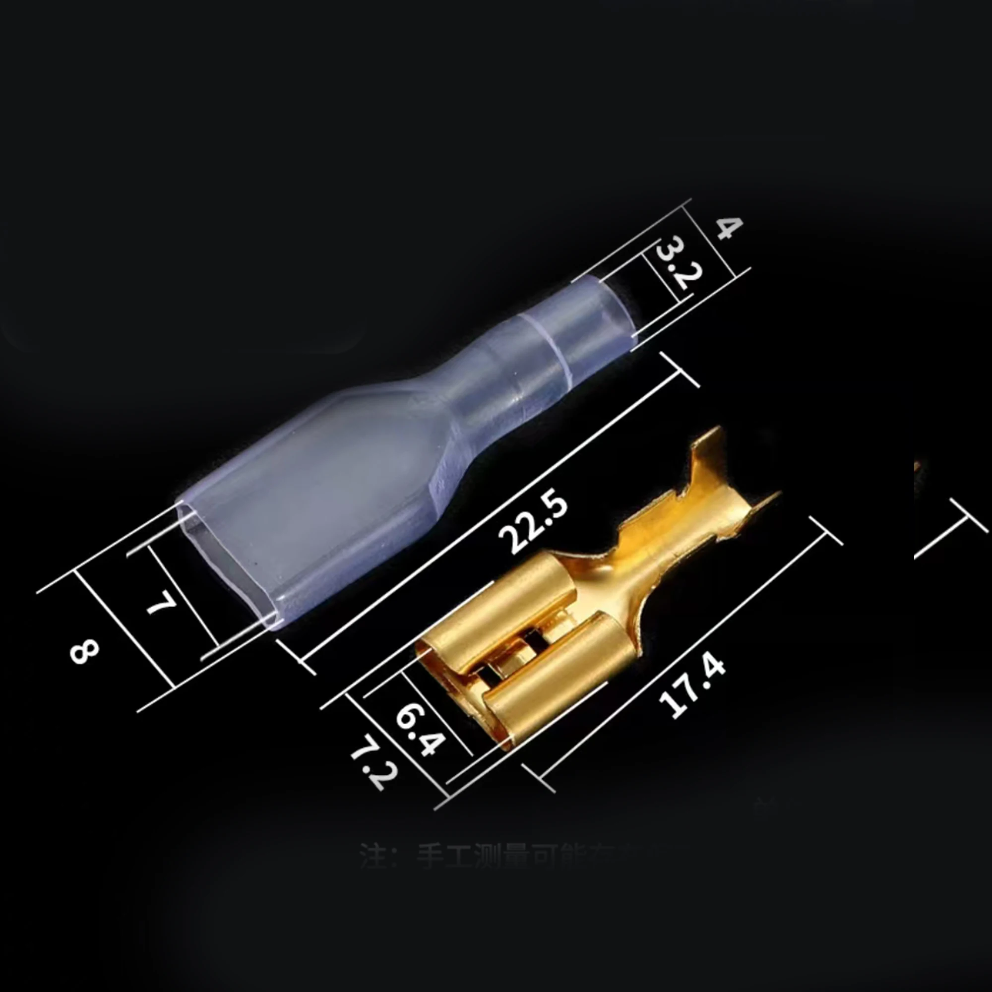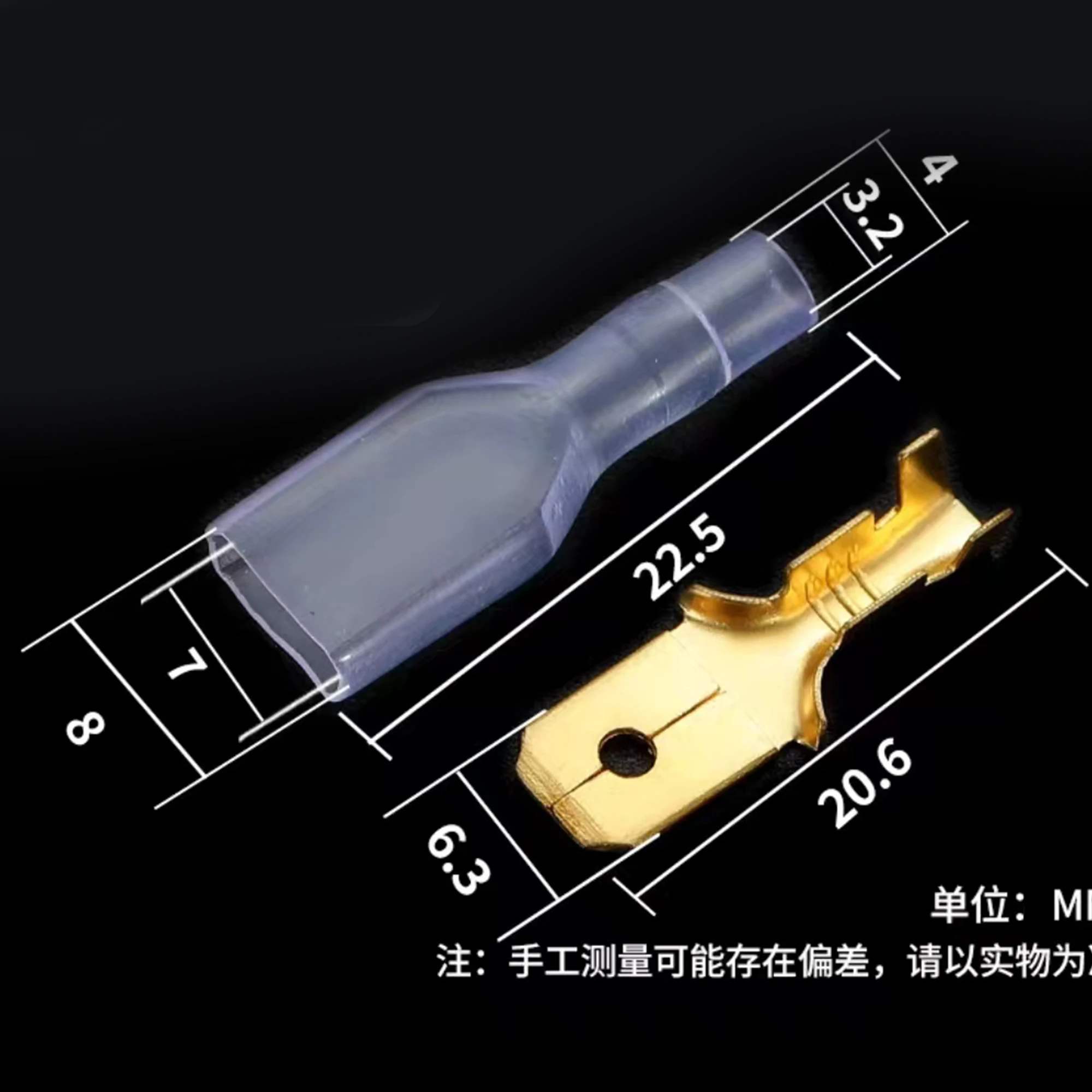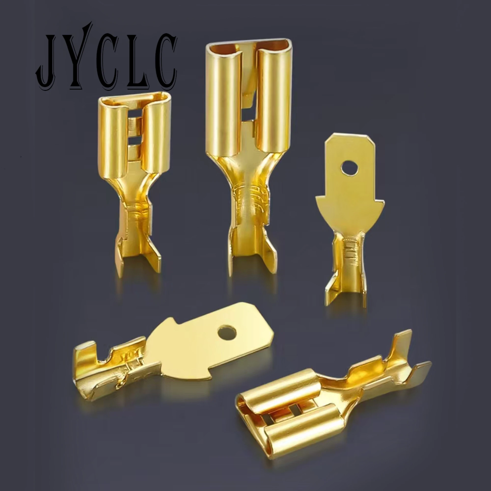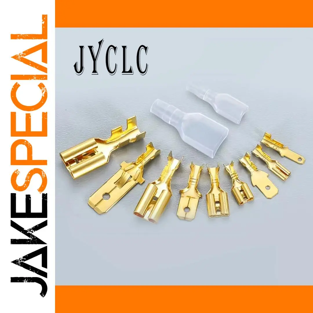 The JYCLC collection features 100 pieces of male and female plug-in terminals, each with all copper inner cores and a surface tinned finish designed for cold crimping. This assortment includes terminal sizes of 2.8mm, 4.8mm, 6.3mm, and 7.8mm, catering to various wire gauge needs. The shiny gold color of these terminals enhances corrosion resistance, ensuring durability and reliability in your electrical projects. Each terminal varies in shape and design, perfect for a range of applications. With this set, you can confidently tackle your connectivity needs, knowing you have high-quality components at your disposal.