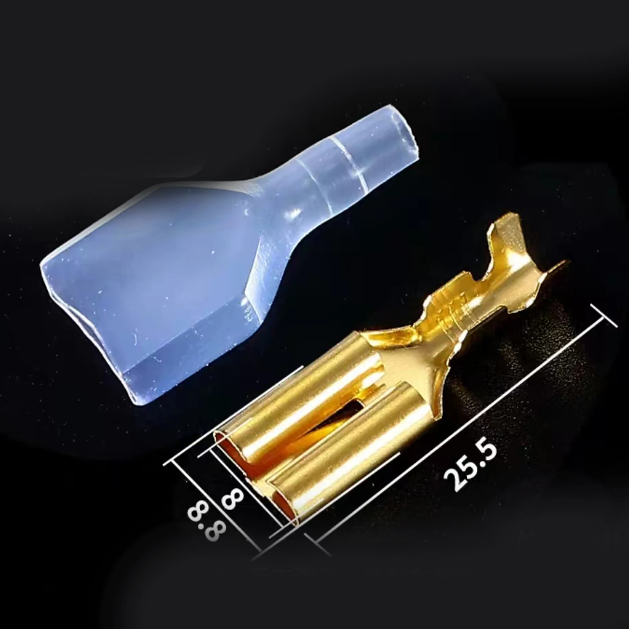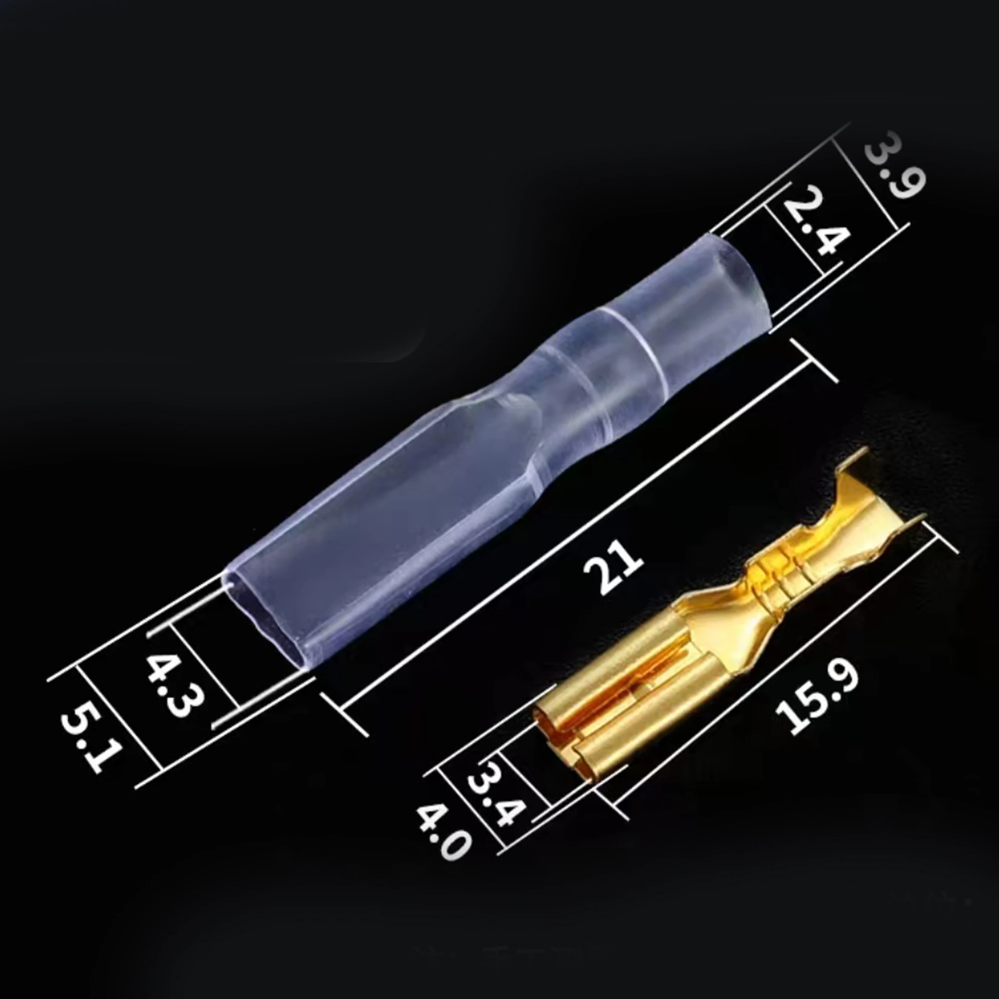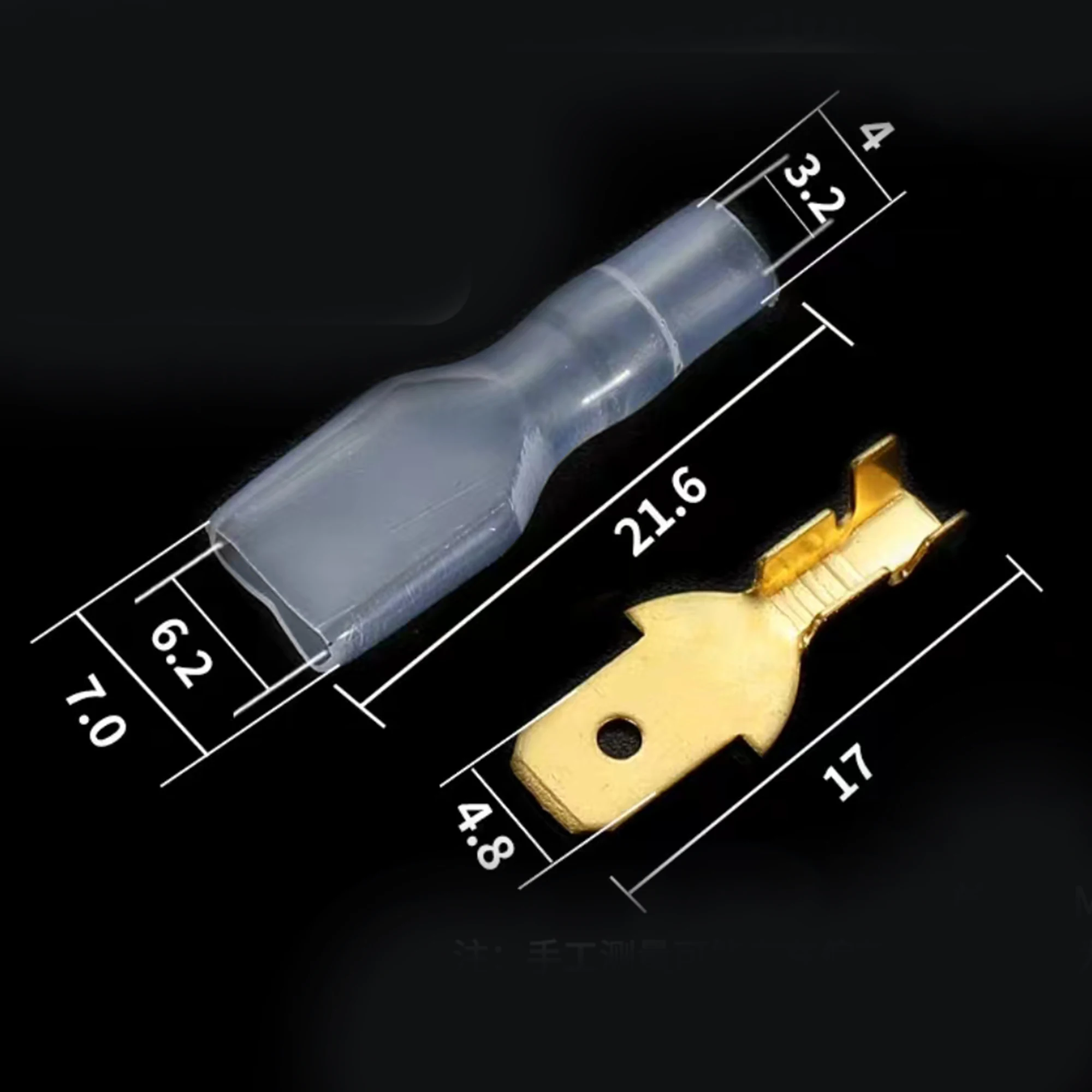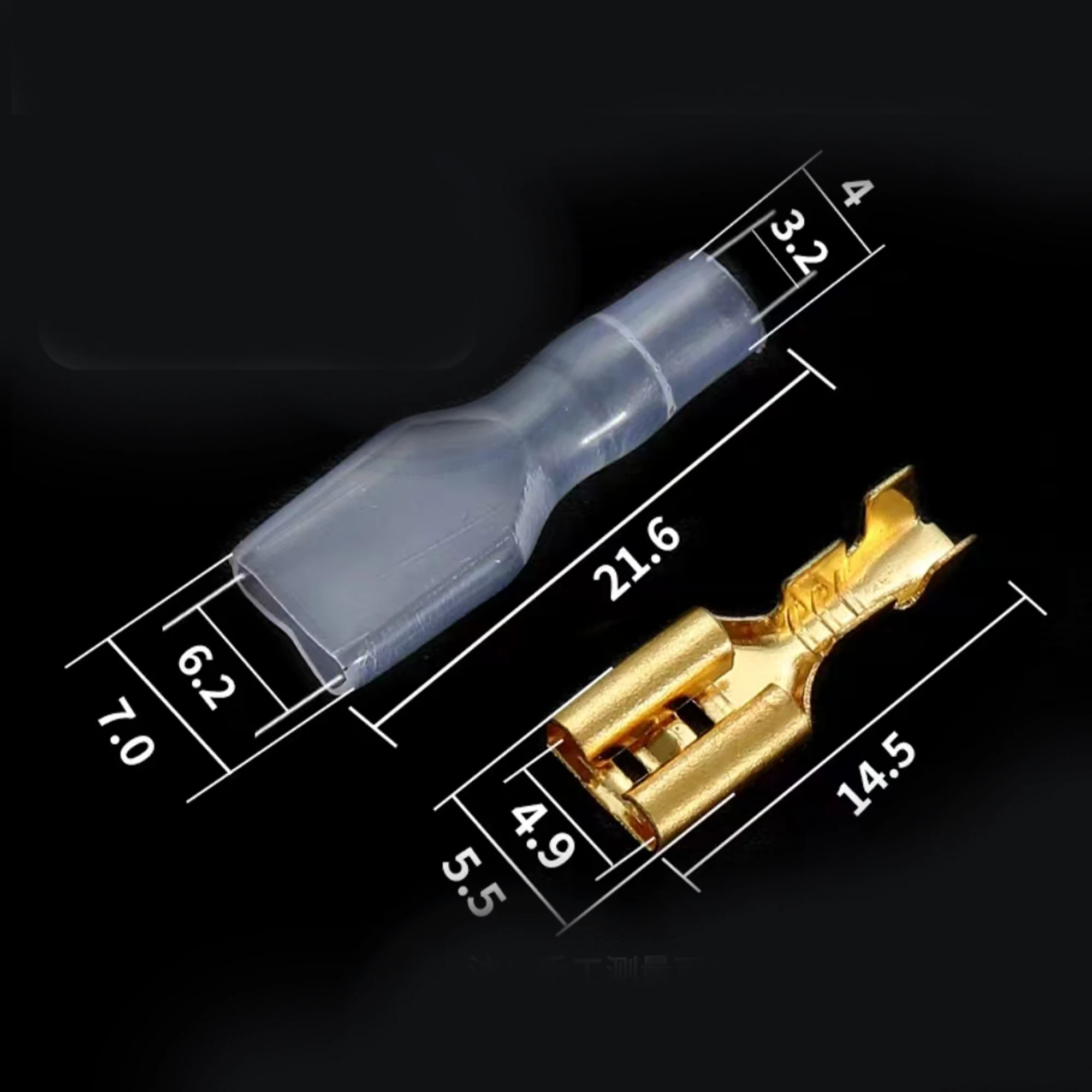 The JYCLC collection features 100 pieces of male and female plug-in terminals, each with all copper inner cores and a surface tinned finish designed for cold crimping. This assortment includes terminal sizes of 2.8mm, 4.8mm, 6.3mm, and 7.8mm, catering to various wire gauge needs. The shiny gold color of these terminals enhances corrosion resistance, ensuring durability and reliability in your electrical projects. Each terminal varies in shape and design, perfect for a range of applications. With this set, you can confidently tackle your connectivity needs, knowing you have high-quality components at your disposal.