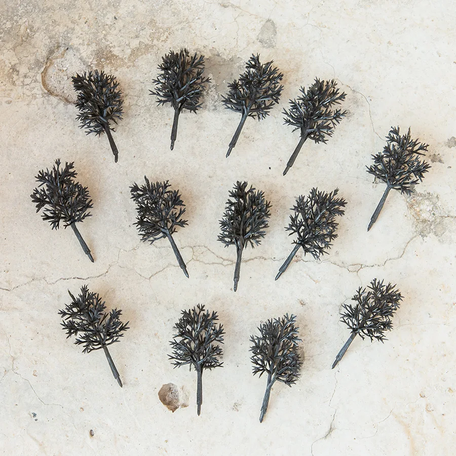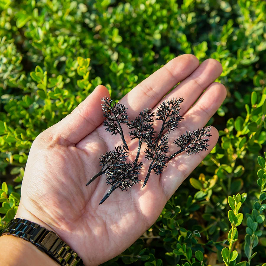 Enhance your model-making projects with this remarkable set of 100 model tree trunks, perfect for creating stunning dioramas and train layouts. Crafted from durable black plastic, these trunks vary in size from 4 cm to 12 cm, allowing you to create diverse landscapes. Each trunk offers a highly detailed, realistic structure with spindly branches that replicate the natural appearance of trees. This versatile collection is designed for hobbyists and builders, making it easy to integrate into various architectural presentations and garden dioramas. With 100 pieces included, your modeling possibilities are limitless; get ready to let your creativity grow!