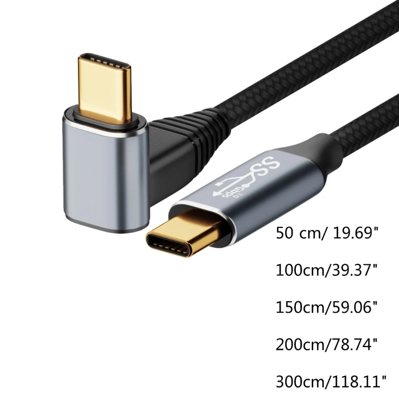 Experience the ultimate convenience and performance with this 100W Right Angle USB C to USB C Cable. Designed with both functionality and style in mind, it features a 90-degree right-angle connector for easy access and negligible strain during usage. The robust construction includes a durable braided nylon sheath that adds a touch of elegance while providing flexibility. With support for Power Delivery of up to 100W and data transfer speeds of 10Gbps, this cable is ideal for charging and connecting your favorite devices, whether it's a game console, laptop, or mobile tablet. Available in five lengths, you can select the perfect size to meet your unique needs.