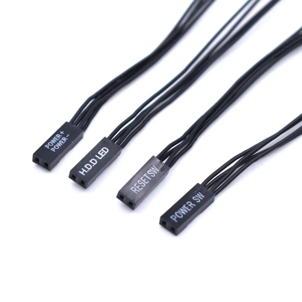 Experience seamless connectivity with this this 10cm dual adapter cable, designed specifically for your motherboard's front panel components. Its sleek black color and minimalist design ensure it blends effortlessly into your system setup, providing a tidy and reliable connection for Power Switch, Reset Switch, HDD LED, and Power LED. The flexible, smooth cable allows easy routing within your case, and the rectangular matte-finish connectors offer a professional look. Whether you're assembling a new PC or repairing an existing one, this adapter cable offers a straightforward solution, ensuring stable, efficient communication between your motherboard and case front panel. Trust in its durability and compatibility to keep your system functioning smoothly.