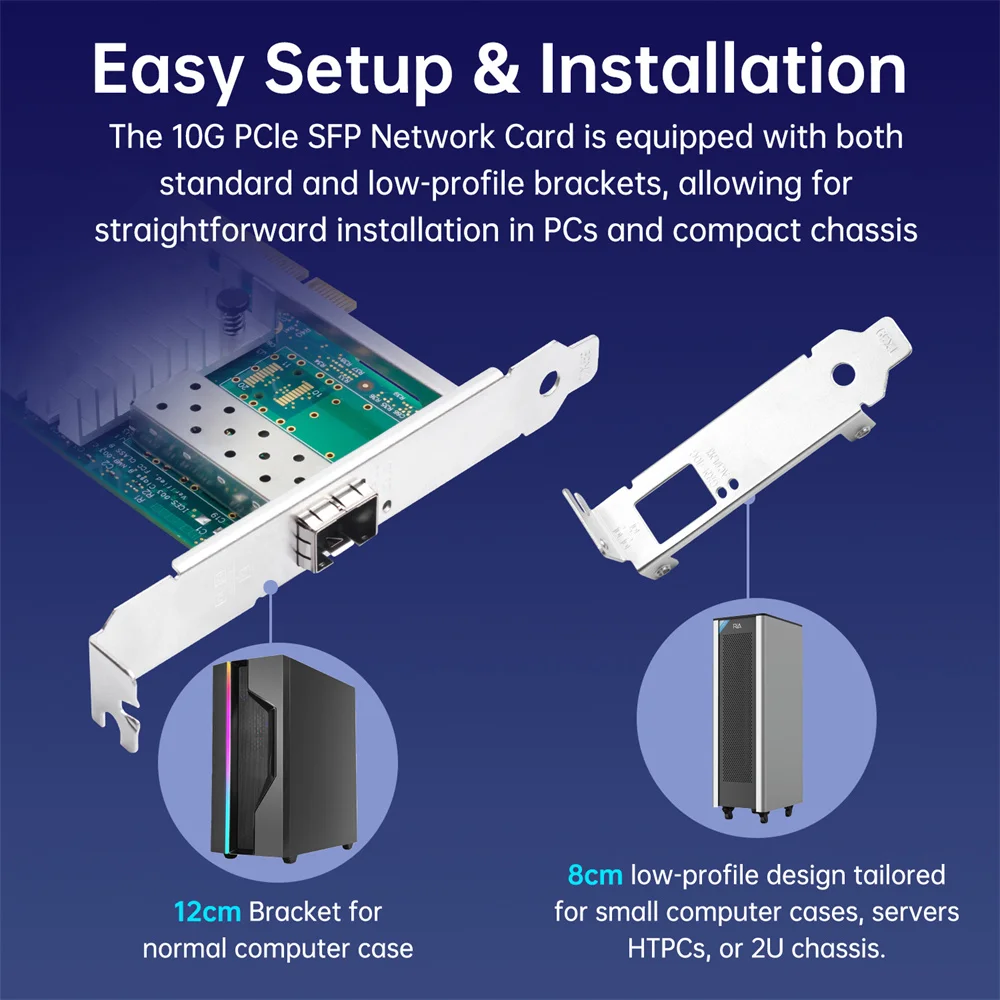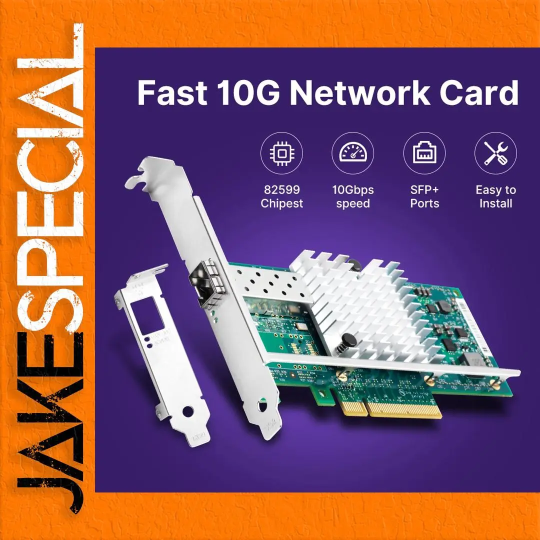Enhance your server’s connectivity with the 10G PCIe to SFP+ Gigabit Ethernet card, designed for optimal performance in high-speed environments. Featuring a PCI Express interface compatible with X8/X16 slots, this card boasts an impressive transmission rate of 10000Mbps (10Gbps) and utilizes the advanced 82599 chipset for reliable 10-Gigabit Fiber Ethernet networking. It comes equipped with two SFP+ ports for seamless fiber optic connections and supports both Windows 7/8/10 and Linux operating systems. With its robust heat dissipation design and integrated optical fiber interfaces, this card is an essential upgrade for demanding server applications.
