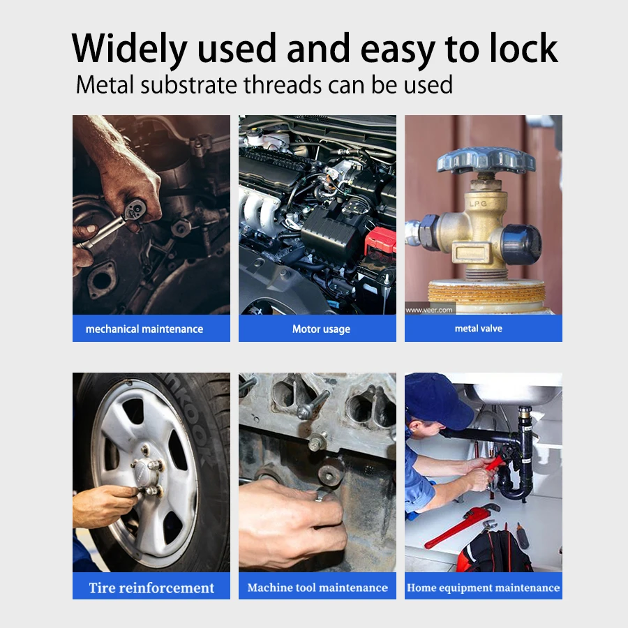 - Provides a strong, reliable bond that prevents screws and nuts from loosening under vibration or shock, ensuring mechanical stability in various industrial and DIY projects.