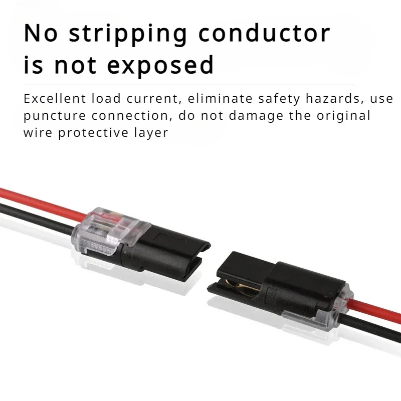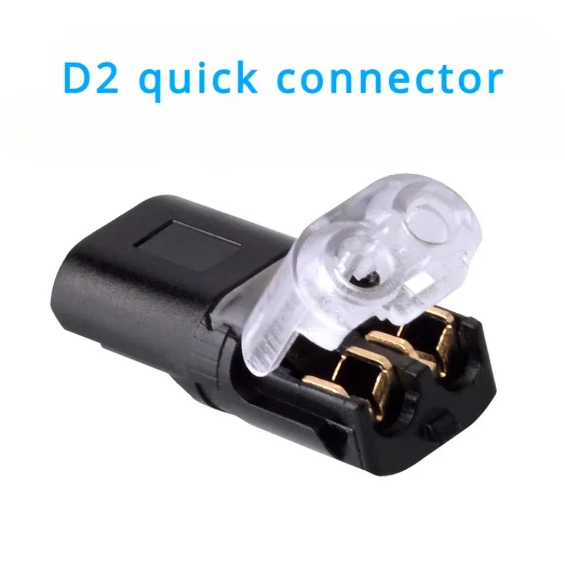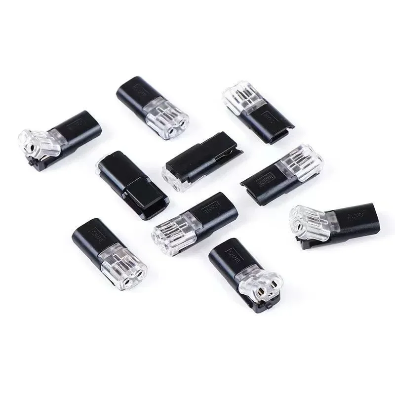 Experience seamless electrical connections with this Protable set of 10 LED quick connector terminals. Each connector features a robust black plastic body and transparent top, allowing for visibility of internal components that guarantee excellent conductivity. Designed with a double-wire mutual plug-in capability, these terminals simplify setups, eliminating the need for welding or stripping wires. Operating securely at a voltage of 48V, they are perfect for a wide range of electrical applications. Say goodbye to complicated wiring and enhance the ease of your projects with these reliable connectors, designed for both hobbyists and professionals alike.
