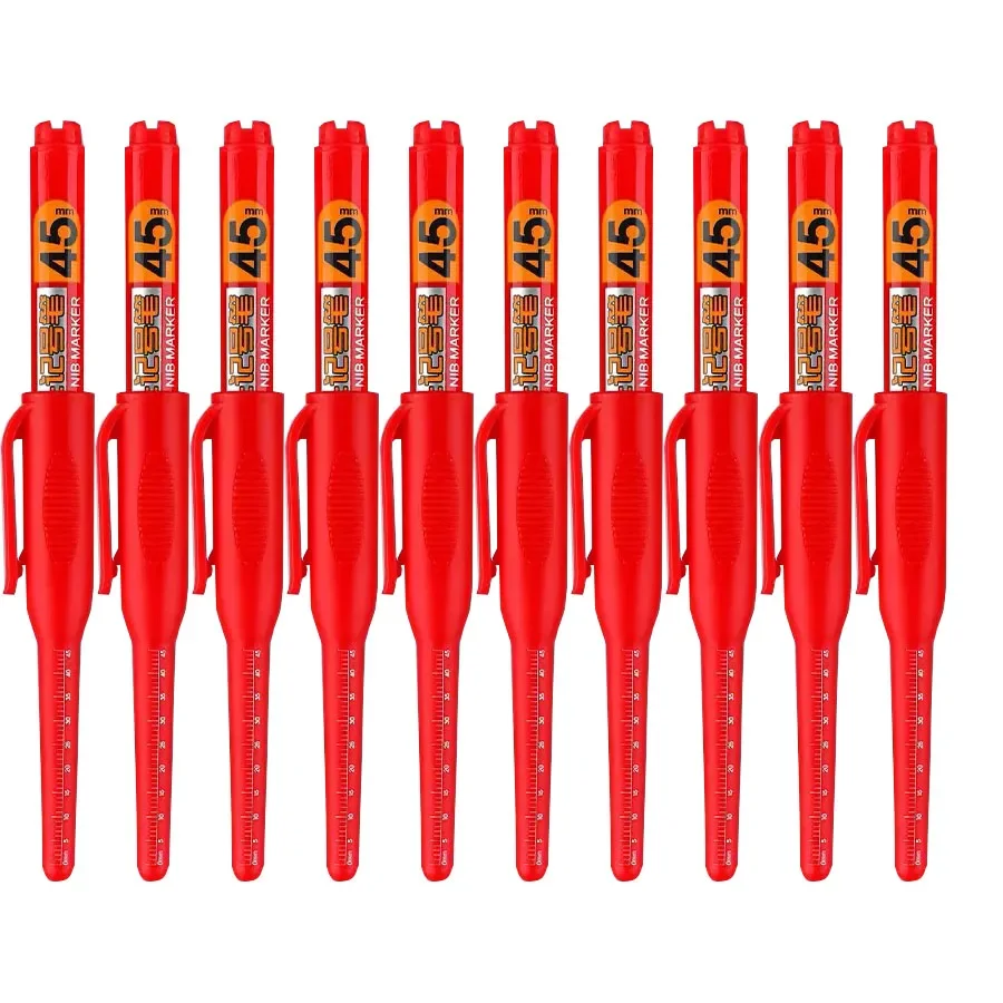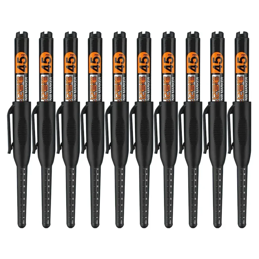 Enhance your woodworking and construction projects with this set of 10 waterproof marker pens, each featuring a 45mm round brush tip designed for deep-hole marking. Available in vibrant black, red, and blue, these pens contain quick-drying, non-toxic, permanent oil-based ink that performs effectively on various surfaces. Each marker offers a straight cylindrical barrel with a textured grip for comfortable handling, ensuring ease of use in any situation. The package contains an assortment of 12 colors, providing versatility for your creative needs. Experience the practicality and reliability of these essential tools for both DIY enthusiasts and professionals alike.