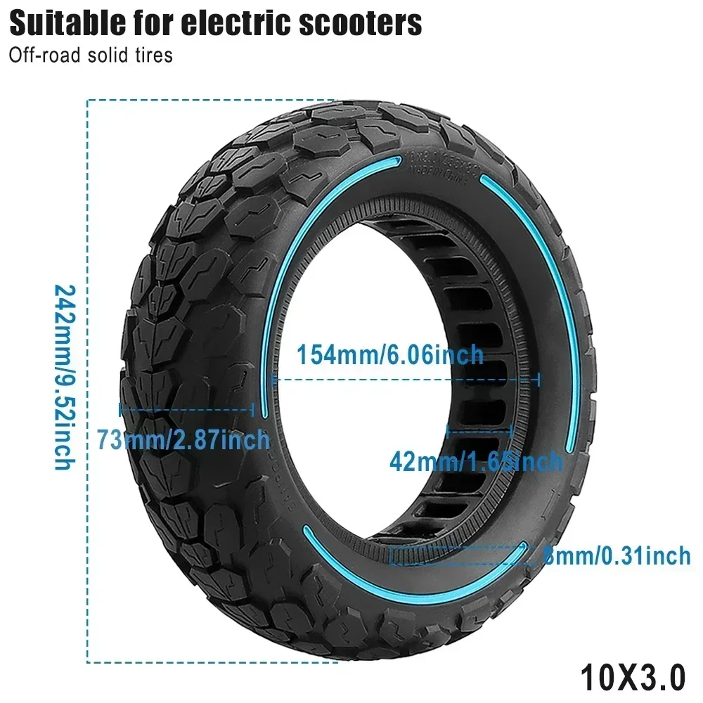 Enhance your electric scooter’s performance with this durable 10×3.0 inch (255×80 mm) solid rubber tire, designed for models like Inokim Oxo, Kugoo M4 G1, Dualtron, and Zero 10X. Featuring a rugged, textured tread pattern with irregularly raised blocks for superior traction, it is compatible with wheels ranging from 36mm to 43mm in width. Constructed from high-quality rubber, this tire offers long-lasting durability and practical shock absorption for off-road and urban adventures. Available in sleek black, vibrant blue, bold red, and bright yellow, it provides both aesthetic appeal and reliable functionality, ensuring your ride stays smooth and secure.