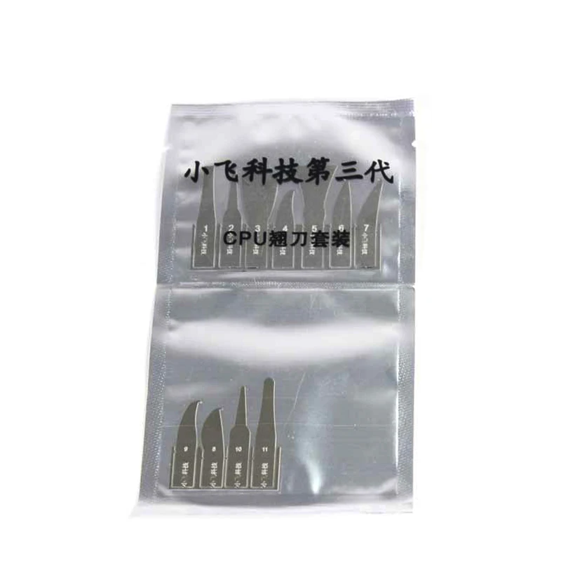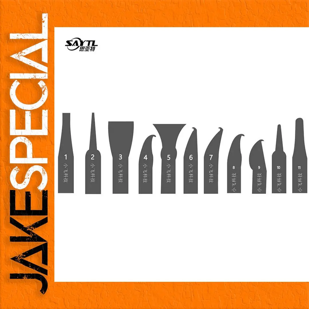 This 11-in-1 IC Chip Repair Tool Set, branded as SAYTL, is designed to meet all your needs for CPU and NAND IC chip removal and repair. Each of the 11 meticulously crafted tools features a sleek metallic finish, ensuring durability and resistance to wear during intensive use. The set includes various blade designs, each tailored for specific tasks, enhancing precision and usability. From thin straight blades for precision cutting to unique split designs for intricate jobs, this set empowers you to efficiently tackle any repair. Conveniently packaged in a compact bag, it’s perfect for mobile phone and computer repair.
