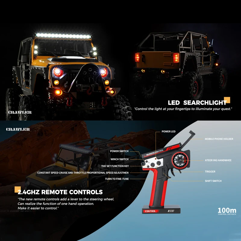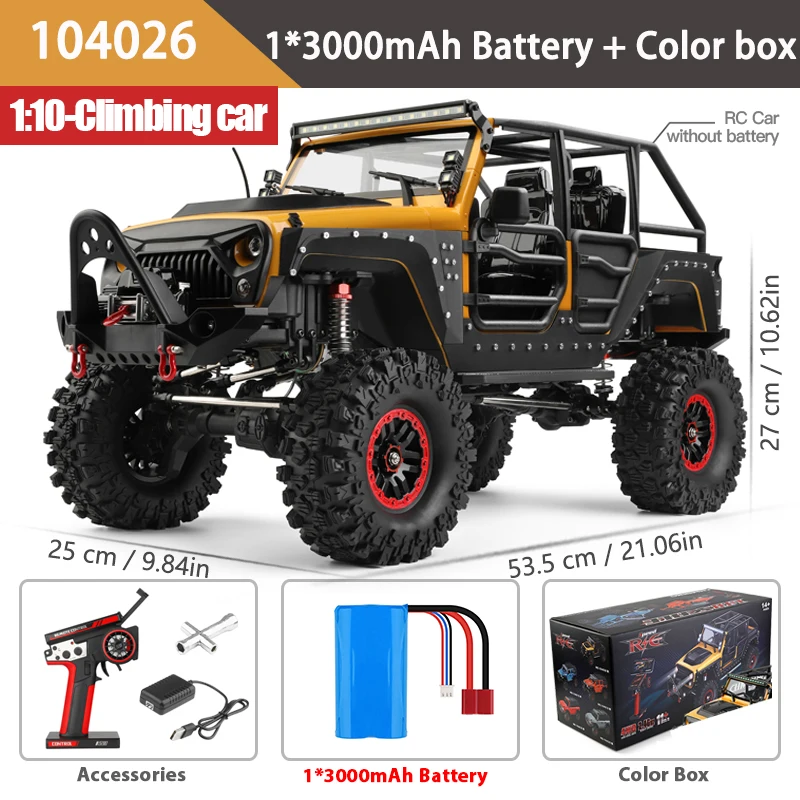 Imagine yourself taking this powerful off-road RC car through challenging terrains, feeling its stability and responsiveness. Its durable build, impressive speed, and realistic detailing make it a fantastic addition to your collection or a thrilling toy for outdoor escapades. Whether for casual fun or serious climbing competitions, this vehicle offers unmatched performance and style. Its advanced features and reliable construction ensure you can enjoy hours of excitement. Don't wait—bring this rugged off-road champion into your life today and experience the adventure firsthand!