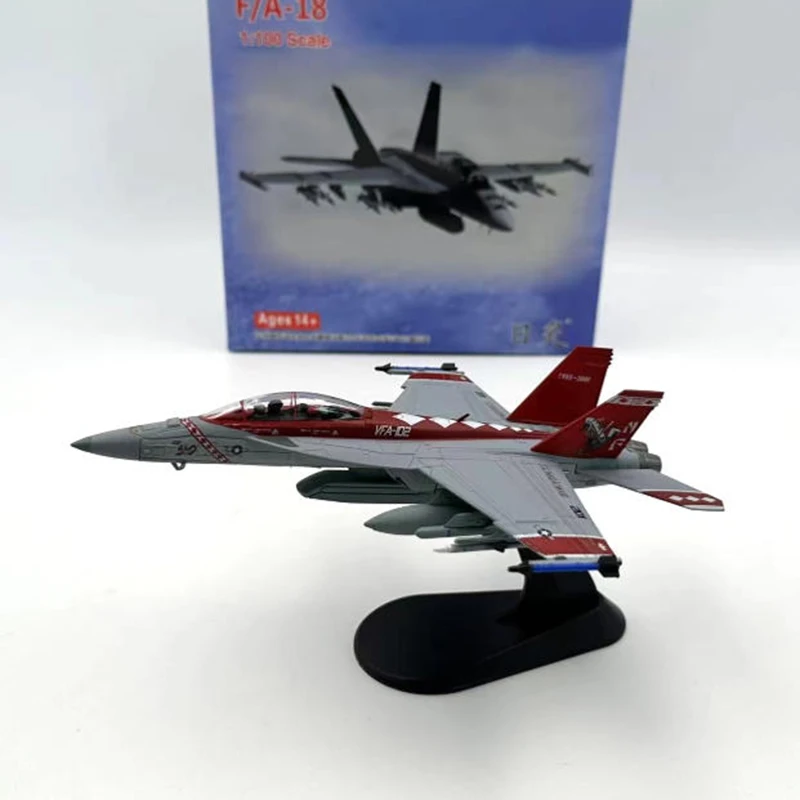 This stunning diecast model of the F/A-18 F-18 fighter jet, crafted at a precise 1:100 scale, seamlessly combines durability and detail. Constructed from a high-quality alloy and plastic blend, its sleek gray body is enhanced by bold red accents and striking graphics along the wings and fuselage. The model captures military design elements, including stylized insignia and numerical decals, elevating your collection to new heights. Its elegant black curved stand allows for a dynamic display, showcasing realistic undercarriage and jet engine details. Perfect for collectors and enthusiasts alike, this model serves as an exceptional gift or a remarkable conversation piece in any setting.