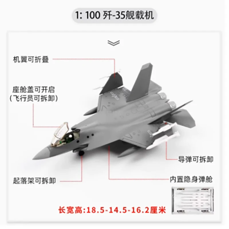 Immerse yourself in the impressive world of aviation with this meticulously crafted 1:100 scale model of the J35/J35A carrier-based aircraft. Designed for collectors and enthusiasts, this high-quality diecast alloy model boasts a sleek, aerodynamic silhouette highlighted by a realistic metallic gray finish. The sharply pointed nose, delta-shaped wings, and tall, angular vertical stabilizers emphasize its modern and aggressive style. Crafted from alloy and plastic, it measures approximately 17 centimeters in length, with a wingspan of 13.5 centimeters and a height of 15 centimeters, offering a perfect display piece that combines visual excellence with technical precision. This model captures intricate design details, making it a must-have for static displays and aviation collections.