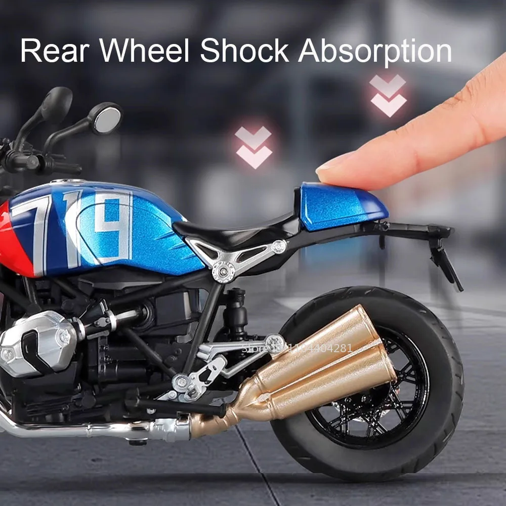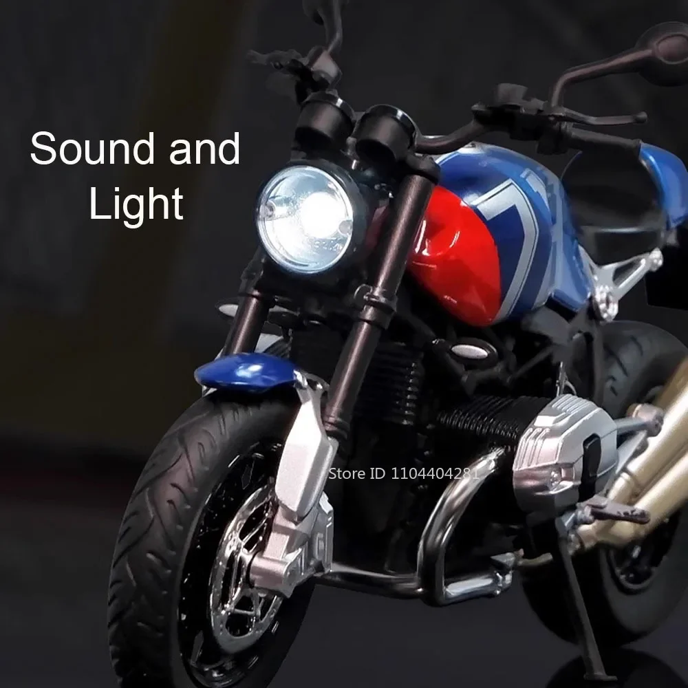 Experience the thrill of a realistic ride with this 1:12 scale alloy motorcycle model, featuring a durable metal body, plastic chassis, and rubber tires. Measuring approximately 17.5 x 7 x 11 cm for the NineT and 18.5 x 7.5 x 12.2 cm for the R1250GS, it boasts stunning details in colors including NineT Black, NineT Blue, R1250GS Black, R1250GS Blue, and R1250GS Silver. Equipped with light and sound functions, this high simulation model is perfect for collectors, display, or as a striking gift for enthusiasts aged 14 and above.