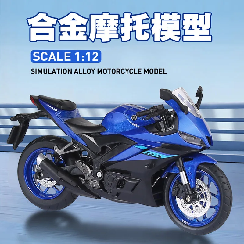Order this high-concerned 1:12 blue motorcycle model now for the perfect sporty display!