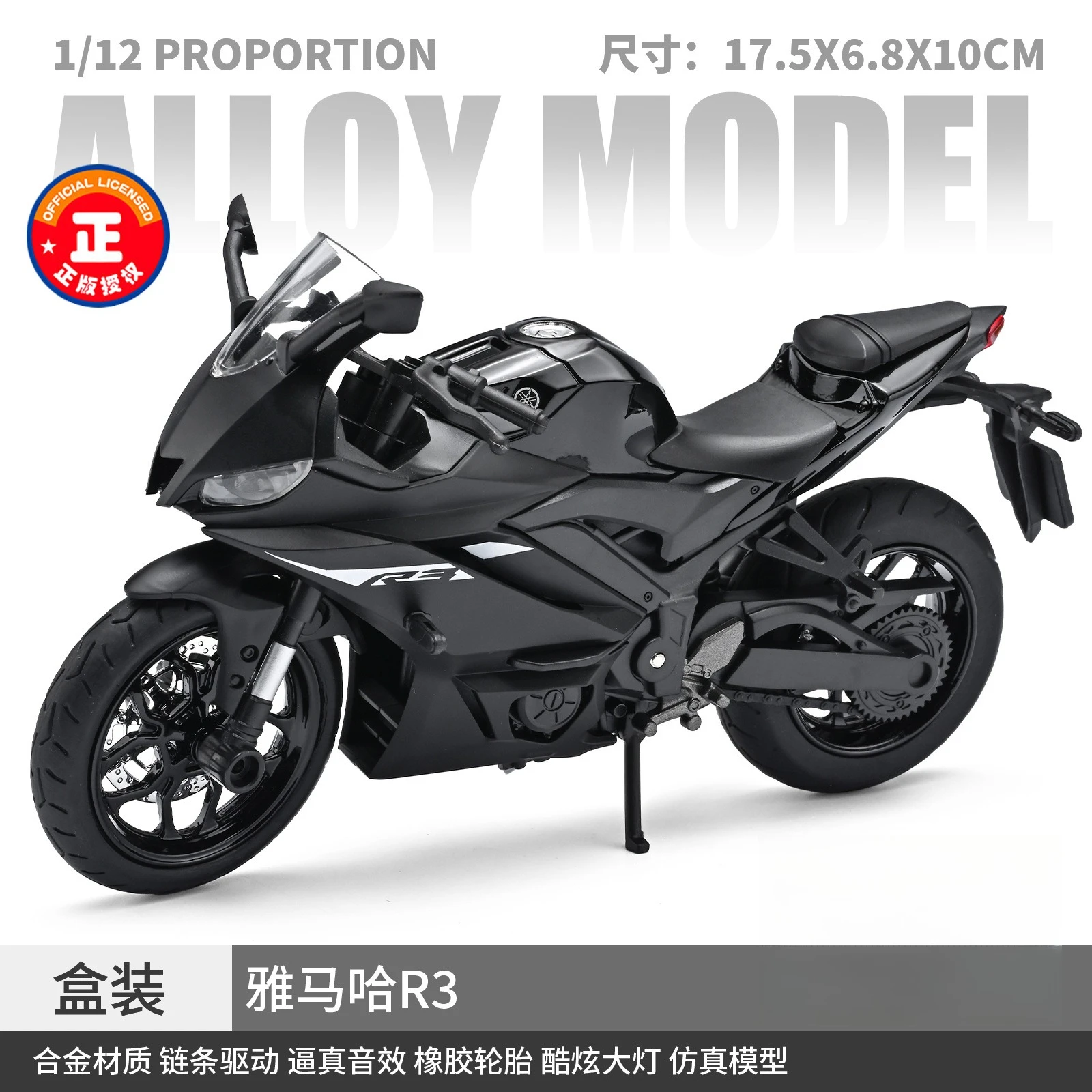 - The model includes realistic elements such as black engine covers, suspension forks, disc brakes, calipers, and textured rubber tires, creating a lifelike appearance that excites any motorcycle enthusiast.