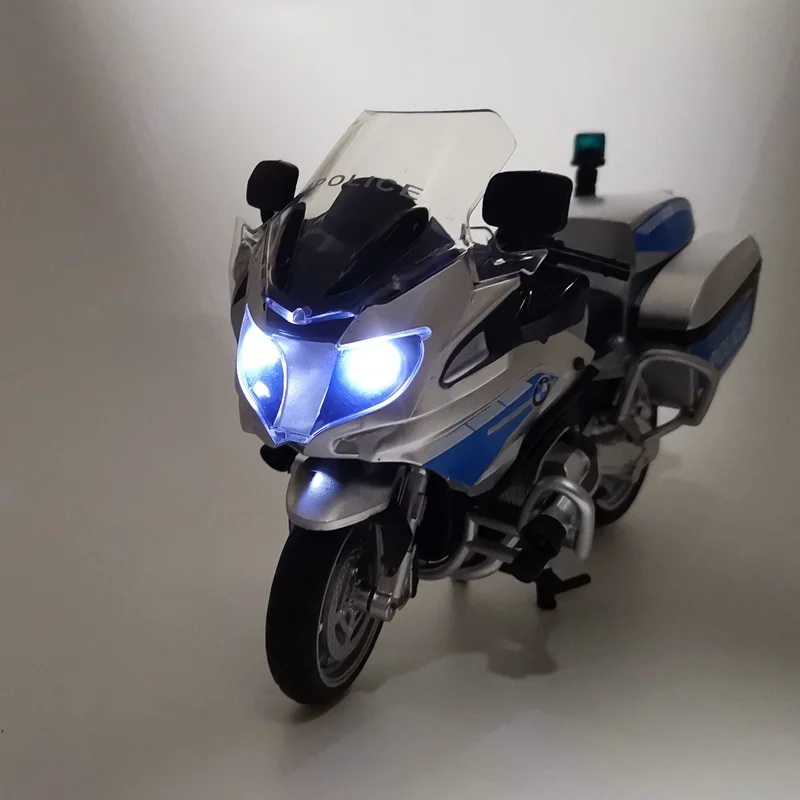 Imagine showing off this meticulously crafted 1:12 scale diecast model of the BMW R1250RT-P Police motorcycle, perfect for enthusiasts and collectors alike. Its realistic design, combined with sound and light features, makes it an impressive display piece or a thoughtful gift. Whether you're decorating your collection or searching for a special birthday or Christmas surprise, this model brings excitement and authenticity. Made from durable alloy and plastic, it captures every detail of the original police motorcycle. Its sturdy build and realistic features ensure it will be admired for years. Elevate your collection with this highly detailed replica that commands attention and sparks conversations.