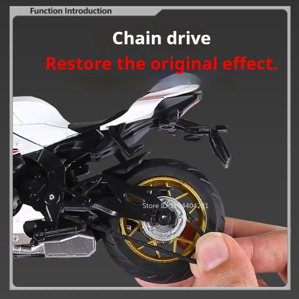 - Comes with rotating front wheels and a rear suspension, providing realistic movement and mechanical detail resembling real bikes.