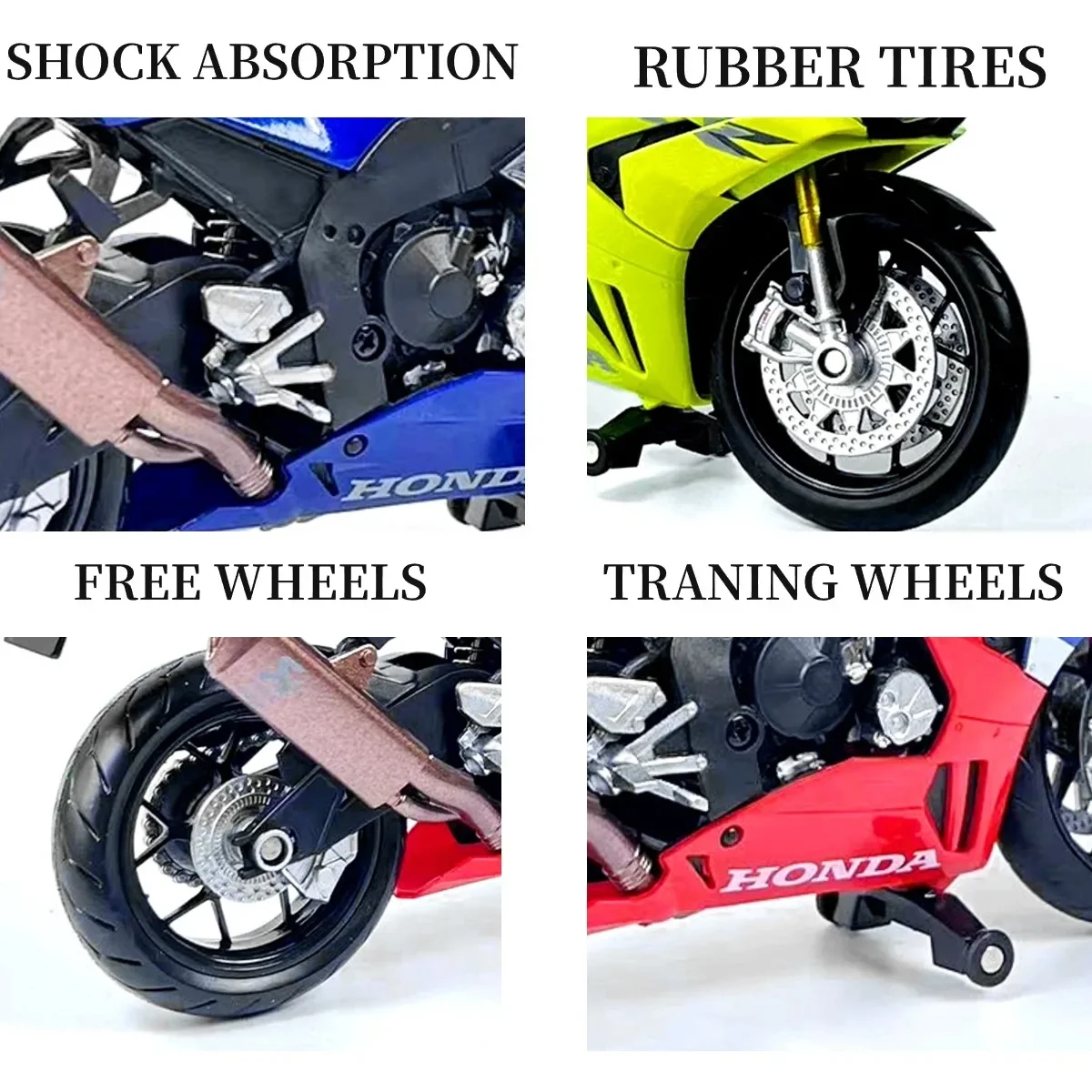Introducing the 1:12 Scale Honda CBR1000RR-R Fireblade Diecast Model Motorcycle, a stunning replica that showcases exceptional craftsmanship and attention to detail. This vibrant model features a striking red body with glossy finishes and subtle matte blue accents, along with distinctive racing stripes and sponsorship logos that enhance its sporty design. Crafted from durable metal, it embodies realism with finely detailed engine components, intricate spoke wheels, and realistic tires. Available in striking color variants of blue, red, and yellow, this motorcycle is perfect for display in any collection, appealing to enthusiasts and collectors alike.