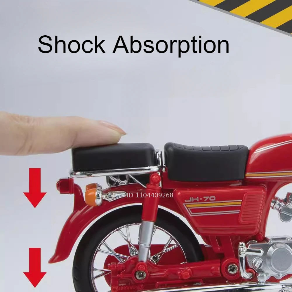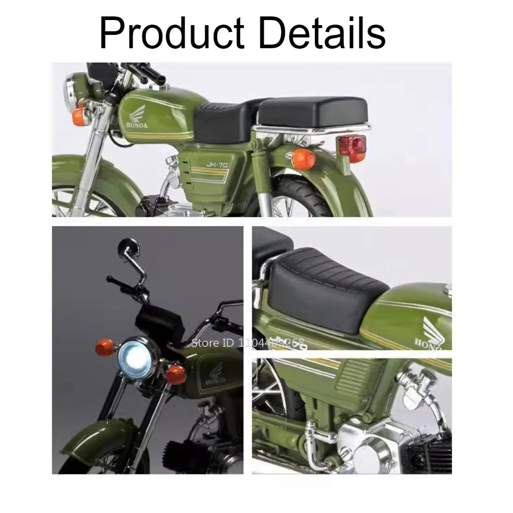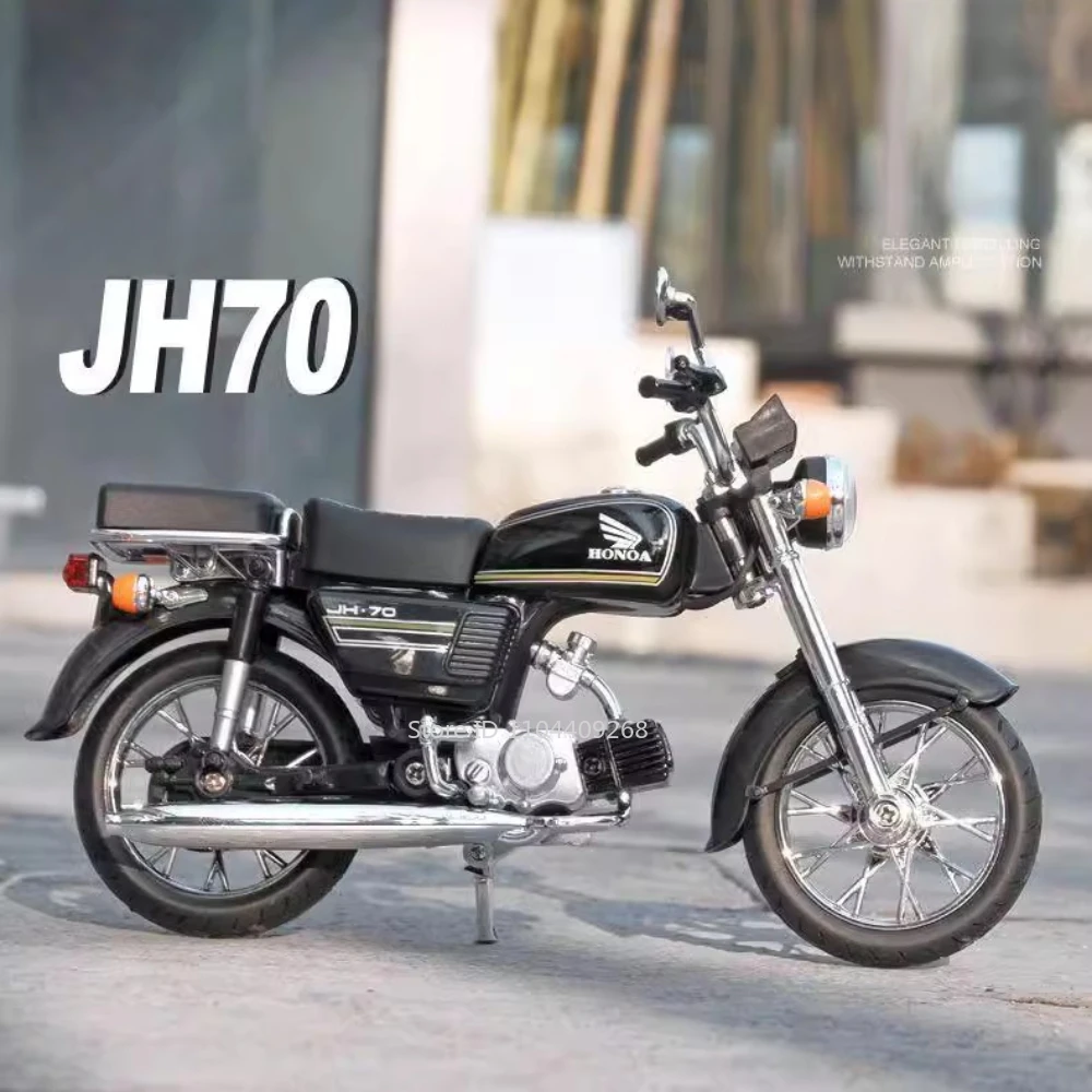 Experience the detailed craftsmanship of this 1:12 scale motorcycle model, available in vibrant colors including green, black, red, and silver. Featuring a metal body with a plastic chassis and textured rubber tires, this high-simulation collectible captures the essence of classic motorcycles like the JH-70 and CB400X. The model measures approximately 17.5 x 11.5 cm for the JH-70 and 17.5 x 7.5 x 11.2 cm for the CB400X, with functional front wheel steering, shock absorption, and a retractable tripod for display stability. Its alloy body ensures durability, making it ideal for enthusiasts seeking authenticity and craftsmanship. Batteries are not included; please source separately.