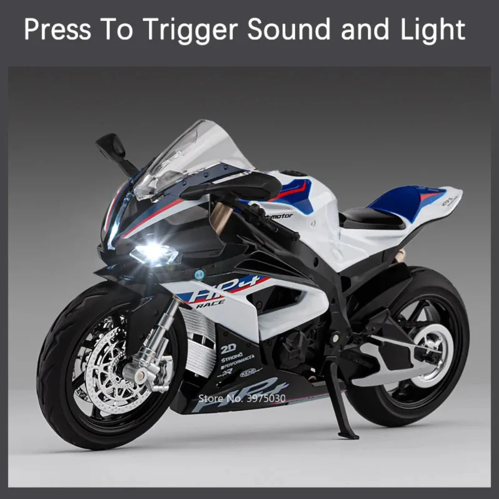 - High simulation craftsmanship, featuring textured rubber tires, metallic accents, and smoothly curved fairings, offering a premium aesthetic and tactile experience.