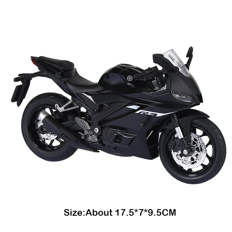 Experience the thrill of high-speed racing with this meticulously crafted 1:12 scale motorcycle model, featuring a durable alloy body and detailed rubber tires. Available in sleek black, crisp white, vibrant blue, and striking red, this model measures approximately 17.5 x 7 x 9.5 cm for the R3 version and 21.5 x 10.5 cm for the V-REX; perfect for collectors and enthusiasts. Equipped with realistic sound and light effects, linkage steering, and shock absorption, it offers an authentic riding experience. Designed with precision craftsmanship, this model is suitable for ages 14 and up, emphasizing durability and high simulation for display or hobby enjoyment.