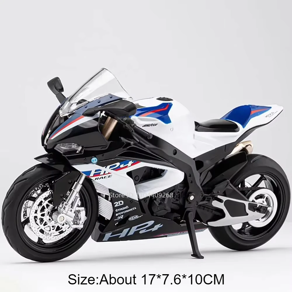 Imagine owning a meticulously crafted miniature that brings the thrill of real racing bikes into your collection. This high-quality model, made of durable alloy and plastic, boasts vivid, striking colors including blue, silver, black, and white. Its realistic design features elaborately detailed engine components, transparent headlamps revealing intricate internal mechanisms, and rubber tires with well-defined tread patterns mounted on authentic spoked rims. The model's functional elements such as sound and light effects, front wheel steering, and rear suspension heighten its realism and interactivity. Perfect for display or as a gift, this miniature captures the sleekness, sporty style, and technical precision of actual racing bikes, making it a must-have for enthusiasts and collectors alike.