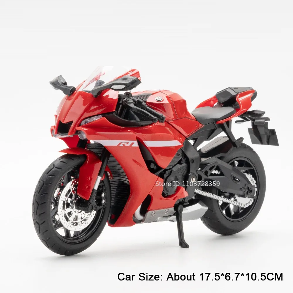 - The model measures approximately 17.5 x 6.7 x 10.5 cm, accurately mimicking the proportions of the real R1 bike with impressive detail and craftsmanship.