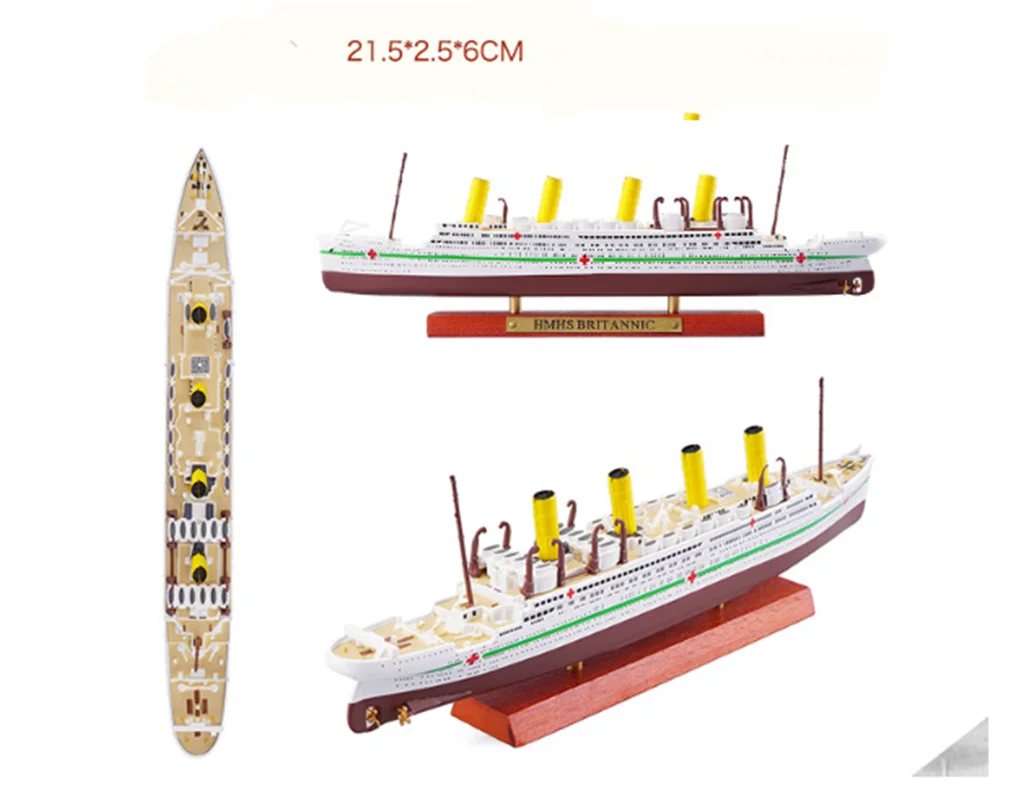Discover the stunning collection of 1:1250 scale alloy cruise ship models, each measuring approximately 22 cm in length. Crafted from a premium blend of zinc alloy, plastic, and rubber, these models are designed for enthusiasts and collectors alike. Featuring detailed representations of iconic ships, such as the HMT Olympic with its modern blue and white design, the HMHS Britannic adorned with bold yellow smokestacks, and the classic RMS Titanic in black, white, and yellow, they showcase remarkable craftsmanship. With a variety of color options (1 to 7), these non-electric models make perfect decorative gifts, emphasizing intricate details and quality in every piece.