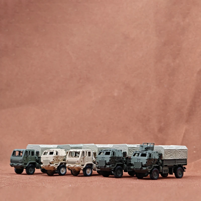 This highly detailed 1:144 scale American logistics tactical truck model is perfect for collectors and enthusiasts, featuring realistic design elements such as boxy cab structures, textured tarp-covered cargo areas, and rugged deep-tread tires. Crafted from plastic with precise detailing, it comes in military green, desert tan, and camouflage-inspired colors like Desert Color No. 2, No. 1 Military Green, No. 2 Army Green, Desert Color No. 1, and Military Green No. 3. Designed solely for display, decoration, or gifting, this fragile static model measures slightly variably due to manual construction and requires gluing if parts detach. Not suitable for children.