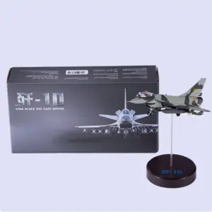 Imagine adding this stunning 1:144 scale diecast alloy J-10 fighter jet to your collection. With its sleek, metallic surface and subtle sheen, this model captures the fighter jet’s modern, aggressive design. Painted in a sophisticated camouflage pattern of gray, black, and darker gray shades, it exudes military precision and craftsmanship. The angular wings, twin engines, and finely detailed tail fins create a highly realistic appearance. Measuring approximately 12 centimeters in length, 7 centimeters in width, and 11 centimeters in height, this finished collectible is perfect for decorating your space or gifting a passionate aviation enthusiast. Its quality construction and meticulous detailing make it a true standout for collectors seeking authenticity and style.