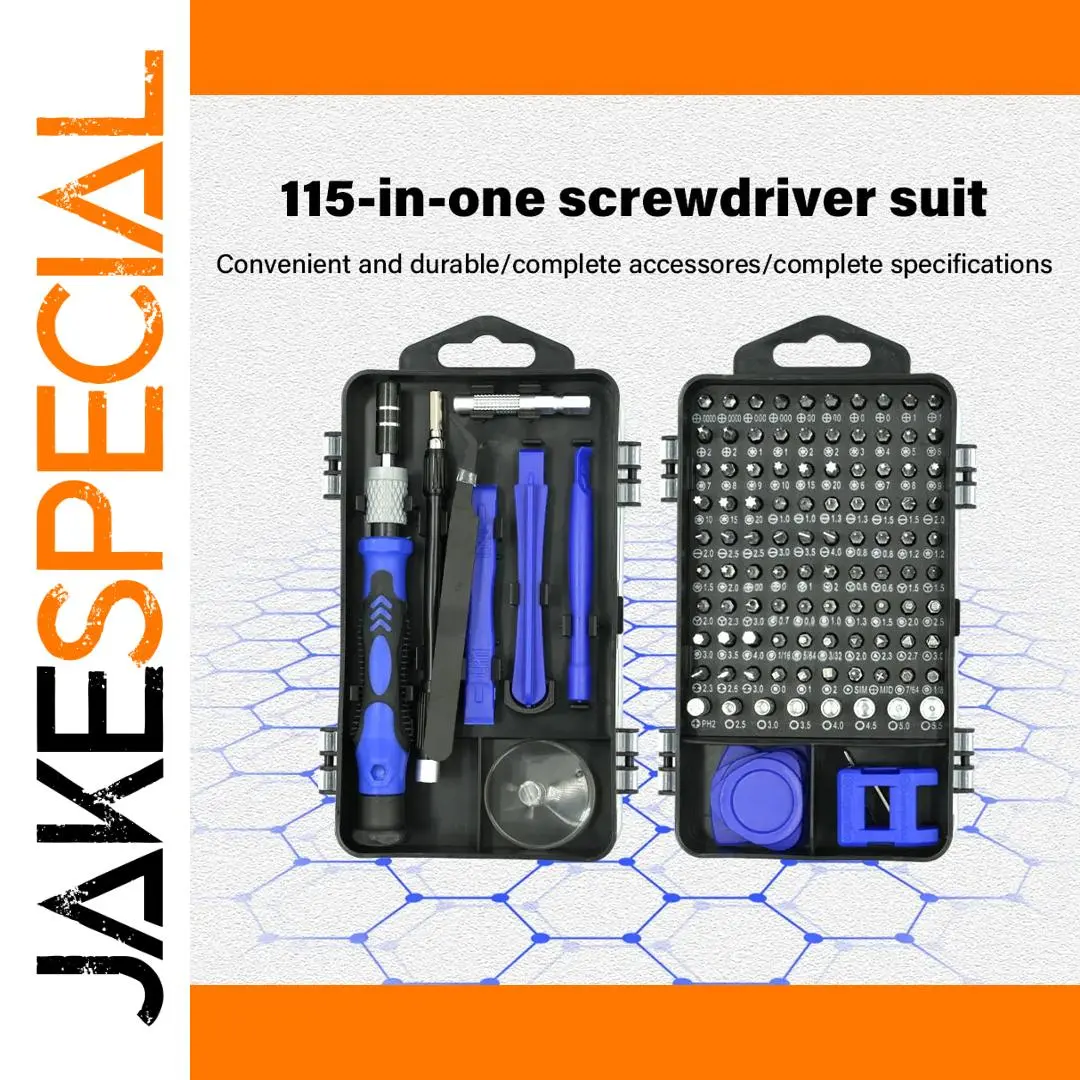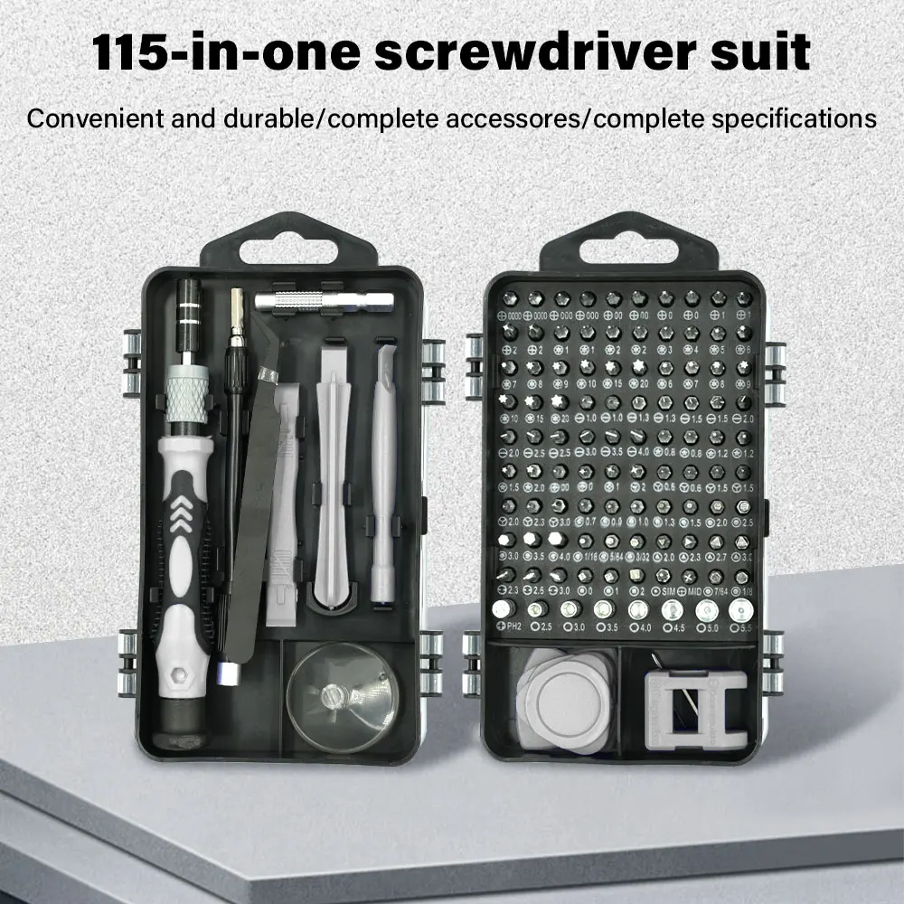 Experience the ultimate in craftsmanship and organization with this 115-piece precision screwdriver set. Crafted from durable stainless steel, each tool features a magnetic tip for easy handling of tiny screws and nuts. The handles are designed with textured grips in black and vibrant blue, offering both comfort and style. The set includes various sizes of flat-head and Phillips screwdrivers, ideal for delicate electronics, household repairs, and maintenance. Organized in two sturdy, portable black plastic cases with clear compartments, it ensures quick access and secure storage. Perfect for professionals and DIY enthusiasts, this set combines reliability with a sleek, modern aesthetic, making maintenance tasks straightforward and efficient.