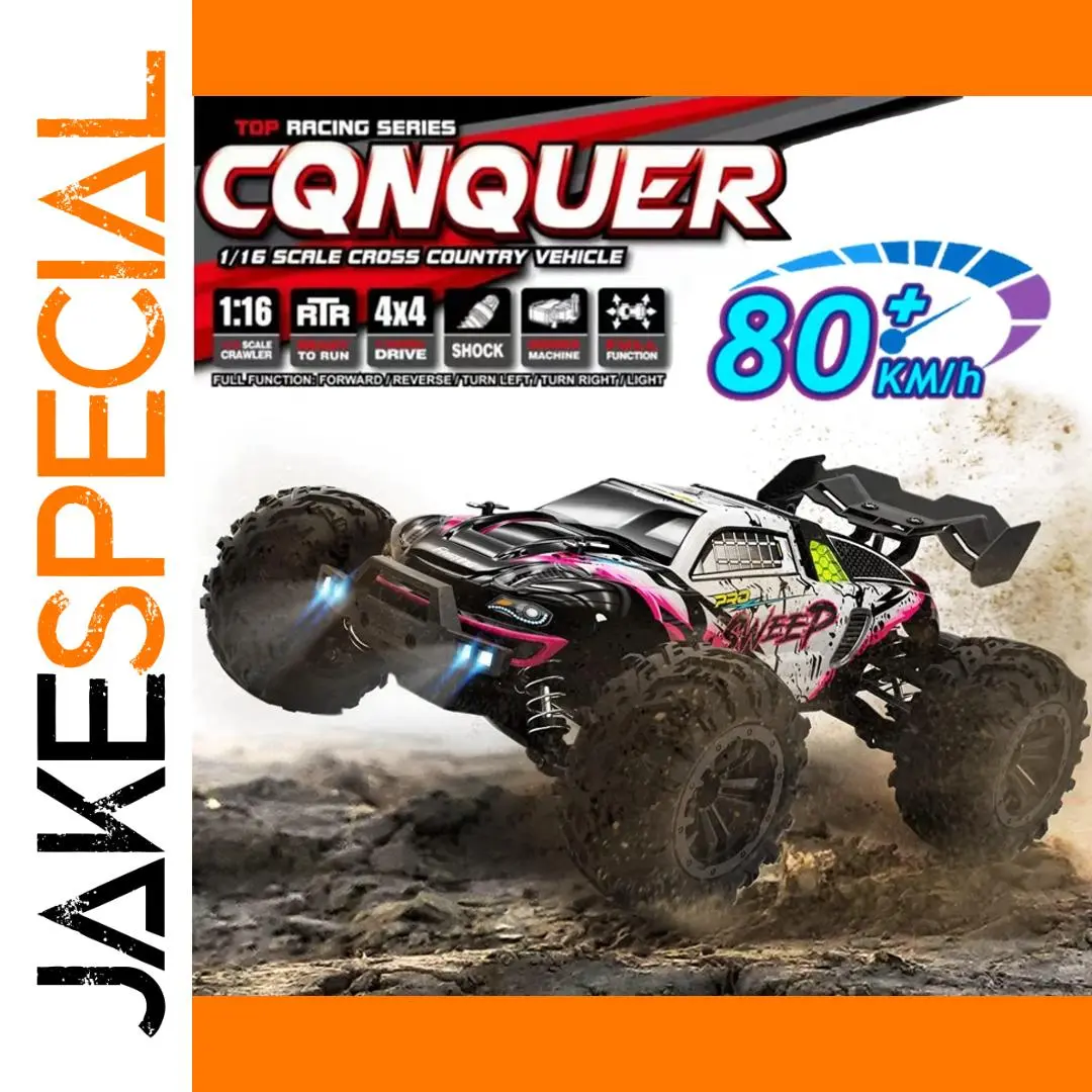 Experience the thrill of off-road racing with this impressive 1:16 scale RC truck from 4WD. Designed for speed, it features a powerful brushless motor that can reach up to 80 km/h on professional tracks, making every race exhilarating. Its rugged build incorporates independent suspension with high-elastic shock absorbers, guaranteeing smooth handling across challenging terrains like sand, mud, and gravel. The sleek aerodynamic body, painted in striking colors, is complemented by large, textured off-road tires with multi-spoke designs, adding to its aggressive appearance. LED headlights illuminate its path, and the reinforced nylon chassis enhances durability. Whether you're a seasoned hobbyist or a passionate beginner, this vehicle promises high performance, realism, and endless fun in every outdoor adventure.