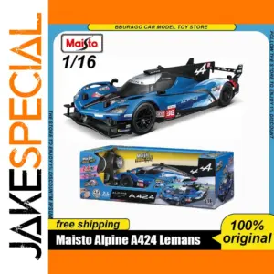 Experience high-speed excitement with this detailed 1:16 scale die-cast RC car, featuring a sleek aerodynamic design inspired by the Alpine A424 and Ferrari 499p race cars. Crafted with a durable metal alloy body, this miniature vehicle weighs only 2.4 grams, showcasing precision craftsmanship and realistic aesthetics. Its vibrant blue finish, accented with black details on the roof, sides, and front splitter, captures the dynamic racing spirit. The angular headlights, sponsor decals, and rear wing elevate its authenticity, making it an eye-catching display piece. Perfect for racing enthusiasts or collectors, this RC car offers thrilling play and showcases true-to-life design elements. Whether for action-packed fun or display, this high-quality model delivers on performance and style.