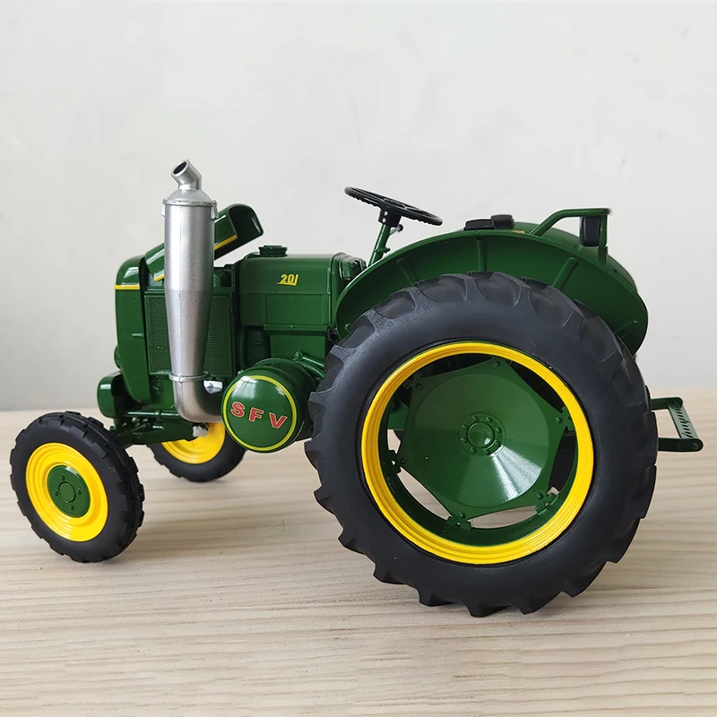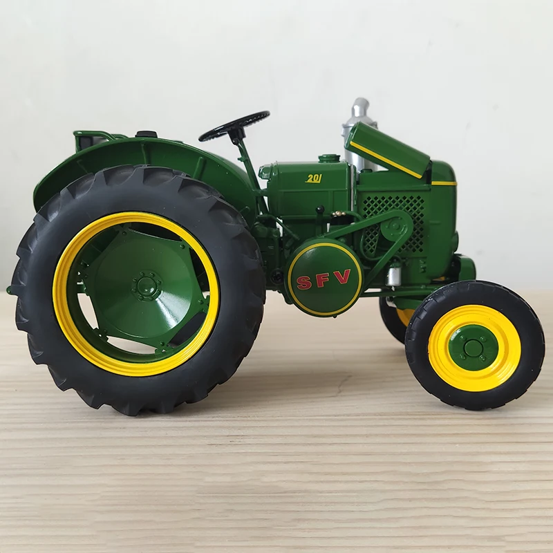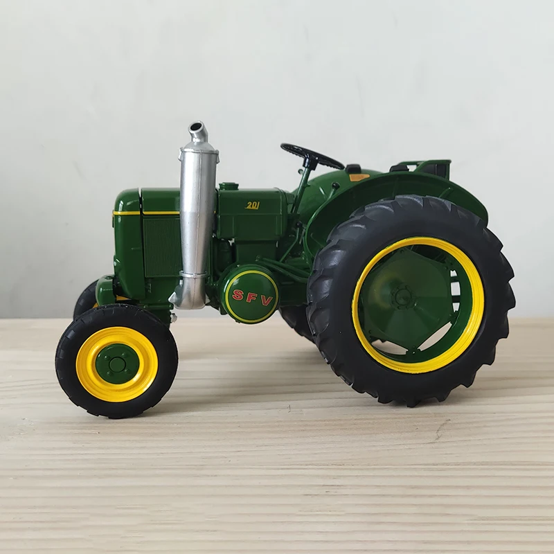Bring a touch of realism to your collection with this detailed 1:16 scale diecast alloy European classical SFV 201 tractor model by WELLY. Crafted from durable metal with vibrant green coloring, this simulative agricultural machinery piece features functional front wheel steering for an authentic look. Perfect for hobbyists, enthusiasts, or as a static decoration, it offers an excellent way to showcase your passion for engineering vehicles. Its realistic design and sturdy construction make it a captivating addition to any display. Imagine having this classic model as part of your collection, adding both aesthetic appeal and a conversation-starting element to your space.