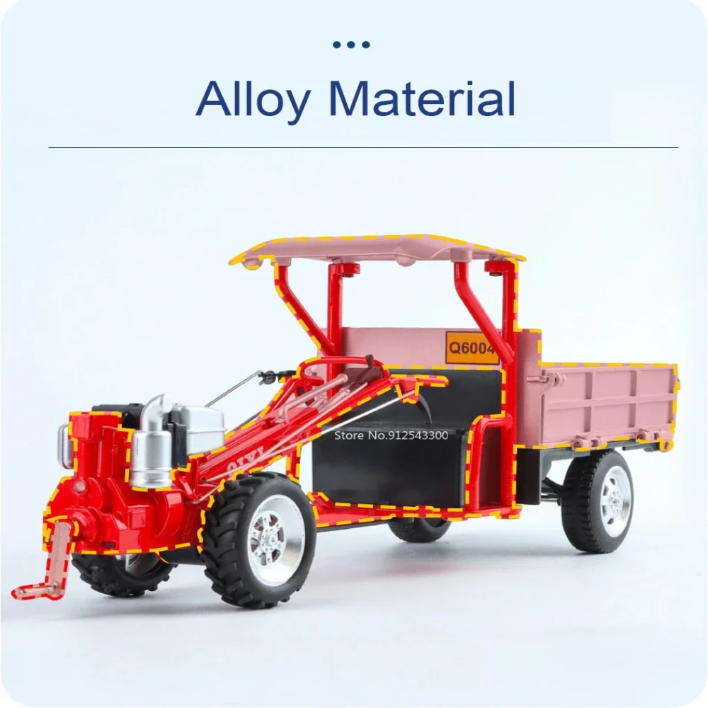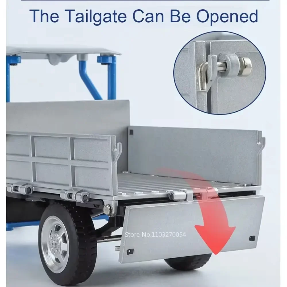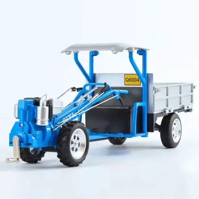 Step into the world of agricultural machinery with this highly detailed 1:16 scale walking tractor model toy. Crafted from a durable metal body, this miniature combines realistic design with playful functionality. Its vibrant blue finish, accented by textural details, enhances its lifelike appearance. The rubber tires, mounted on white plastic rims, provide an authentic look and feel, while the textured cargo bed with gray grid-like panels adds depth to its sturdy structure. Equipped with sound and light features, realistic steering with a front-turning mechanism, and openable doors, this model invites hands-on engagement. Perfect for collectors and enthusiasts, it offers an immersive experience of agricultural machinery fun.