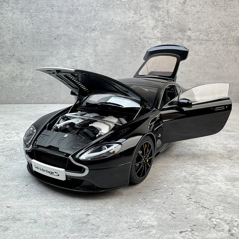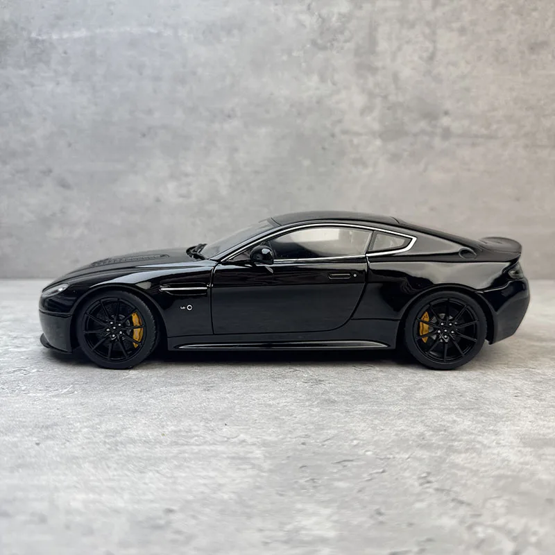 This 1:18 scale alloy car model, designed for collectors and enthusiasts aged 14 and above, features a sleek Bright Black finish with a durable metallic construction. Inspired by a V12 engine design, it boasts intricate detailing with realistic features, including aerodynamic contours, a distinctive grille, elongated headlights, black multi-spoke alloy wheels with low-profile tires, and contrasting yellow brake calipers. Non-electric and battery-free, this collectible model emphasizes craftsmanship and realism, making it an ideal gift or display piece for automotive enthusiasts seeking a sophisticated representation of high-performance luxury.