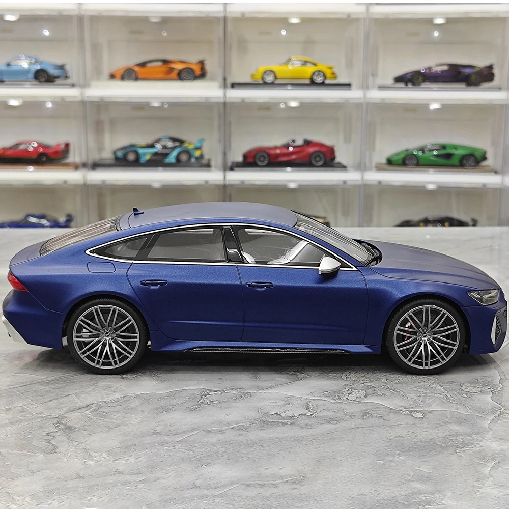 - Realistic 1:18 scale model crafted from durable resin, showcasing authentic design elements of the Audi RS7 ABT in a sleek matte blue finish.
