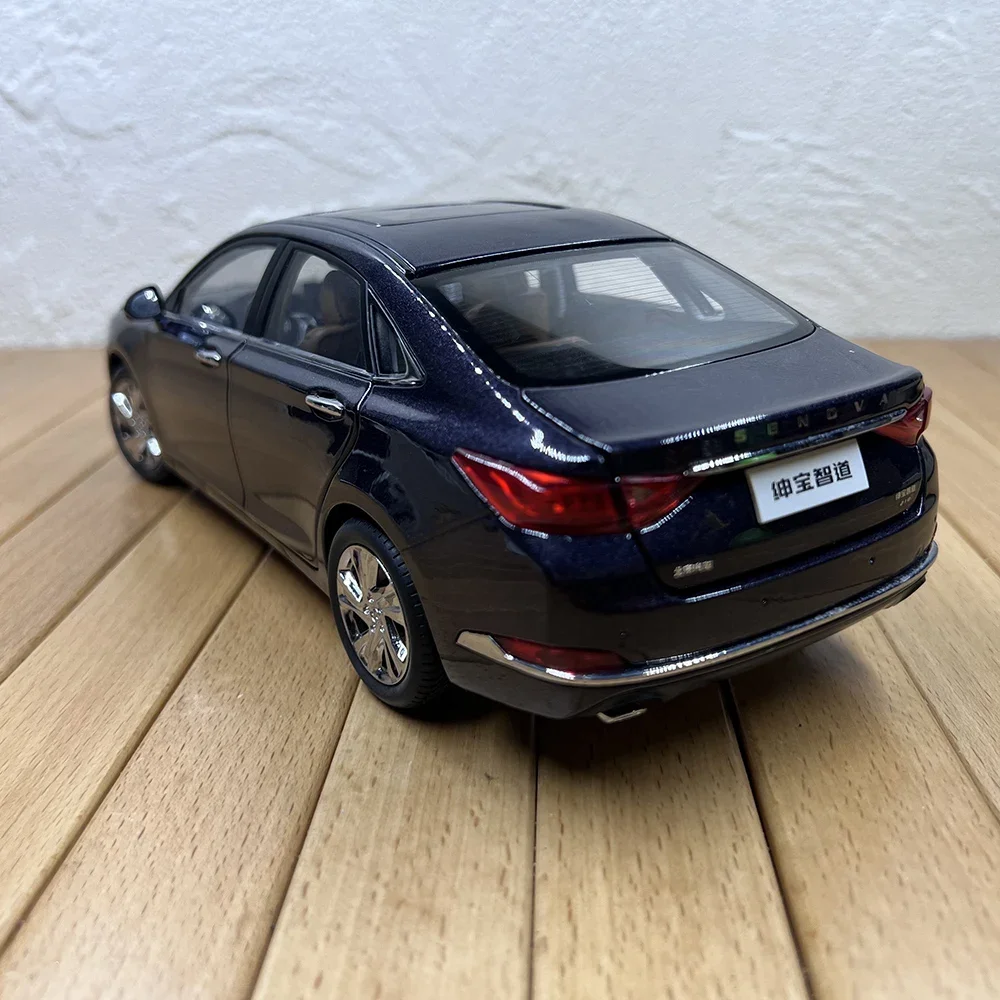 Experience the elegance of this detailed miniature Bao Shenbao Zhidao, perfectly capturing the sleek design and refined aesthetic of the original. With a dark, metallic navy blue finish, its polished exterior exudes sophistication and modernity. The sharply defined headlights with clear lenses, combined with a chrome-accented grille, highlight its realistic craftsmanship. The smooth, contoured hood and sculpted doors add depth, while the alloy rims with multiple spokes and textured tires enhance authenticity. The gently sloping roofline and tinted windows complete this streamlined silhouette, making it an eye-catching display piece. Ideal for collectors and hobbyists, this model brings a touch of luxury to any collection or decor setup.