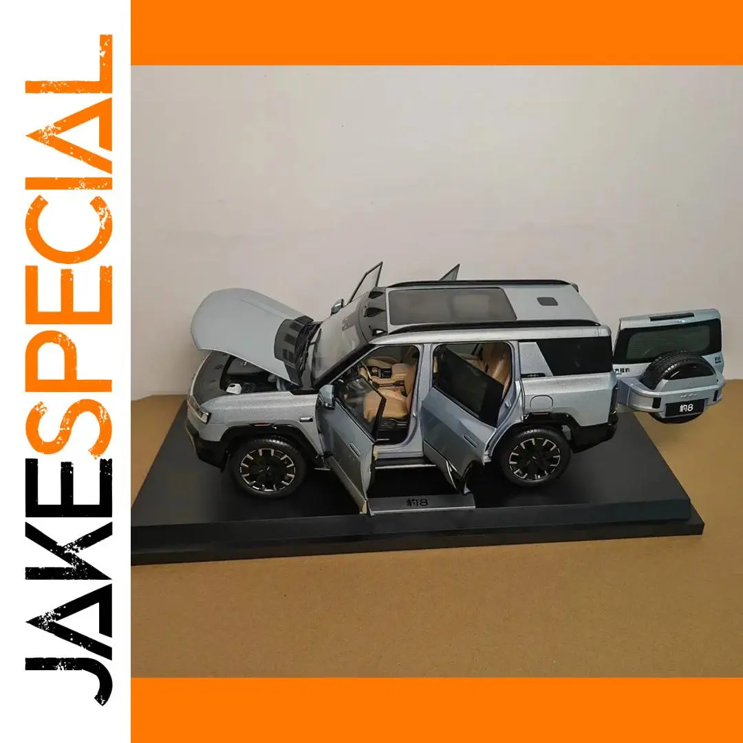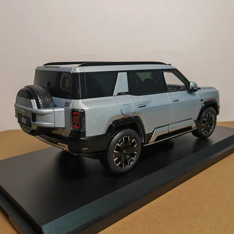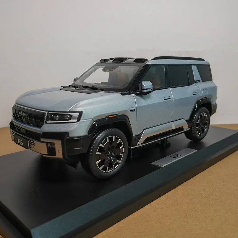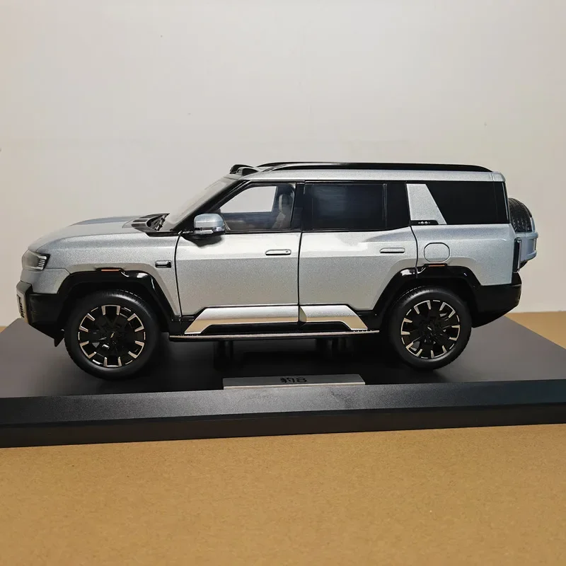 Experience the thrill of owning this exquisitely detailed diecast 1:18 scale model of the BYD Formula Leopard off-road vehicle. Crafted from high-quality metal, this model showcases a sleek metallic silver finish complemented by matte black accents on the rims, grille, and rear spare tire cover, perfectly capturing the sporty and rugged aesthetic. The boxy, aerodynamic design emphasizes durability and adventure, making it a perfect display piece for enthusiasts. With functioning wheels and a meticulously detailed interior visible through open doors, every aspect echoes realism. Presenting a balanced blend of modern style and rugged utility, this model invites you to imagine the journey and enjoy the craftsmanship, elevating your collection with a touch of sophistication.