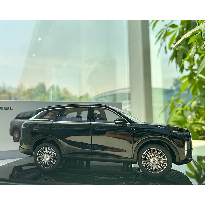 Experience the realism and elegance of this meticulously crafted 1:18 scale diecast model of the Chery Tiggo 8L, finished in sleek, glossy black. Designed for adult collectors and enthusiasts, this detailed replica captures the vehicle’s refined contours, flowing lines, and sophisticated silhouette. The intricate front grille features a diamond weave pattern, complemented by modern, angular headlights that exude contemporary style. The model’s transparent windows offer a glimpse into the carefully detailed interior, while proportionate side mirrors enhance authenticity. With four functional doors and openable front and rear covers, this model boasts impressive craftsmanship and attention to detail. Mounted on a glossy black display base, it’s an ideal centerpiece for collections or gifts. Its durable metal construction ensures long-lasting quality and safety, creating a perfect miniature of this popular SUV.