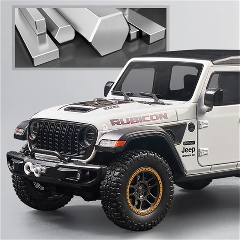 - This 1:18 scale diecast model offers a realistic representation of the Jeep Wrangler Rubicon, including a sturdy alloy body and detailed plastic components for durability and authenticity.
