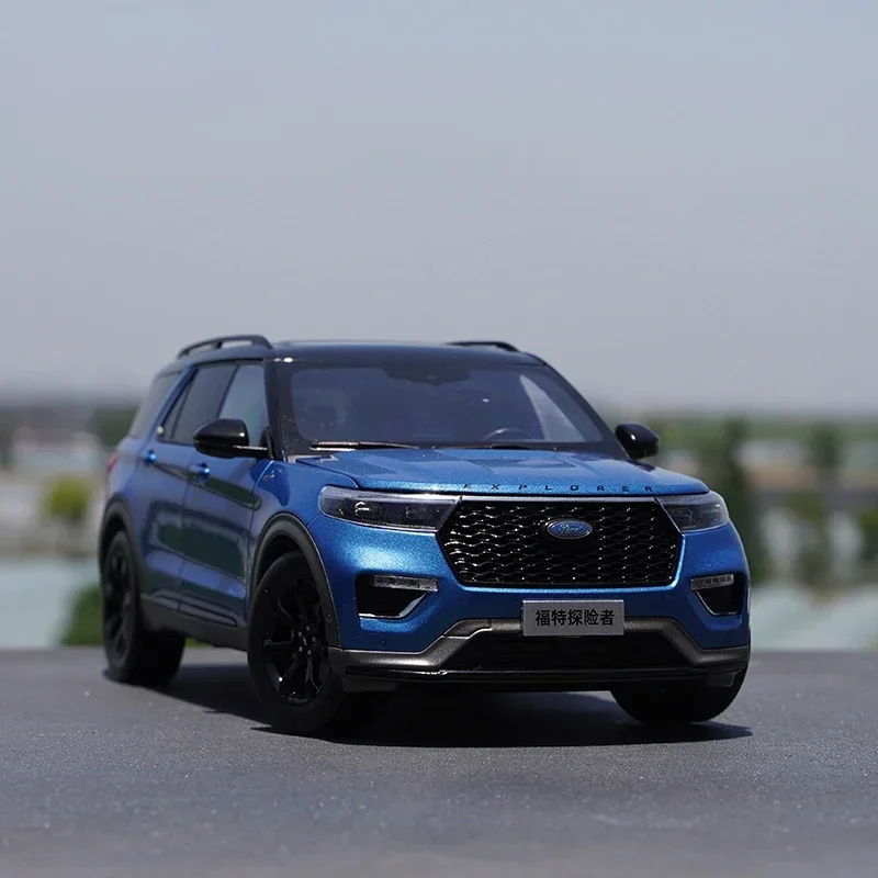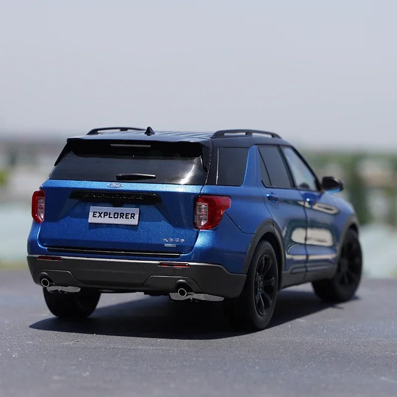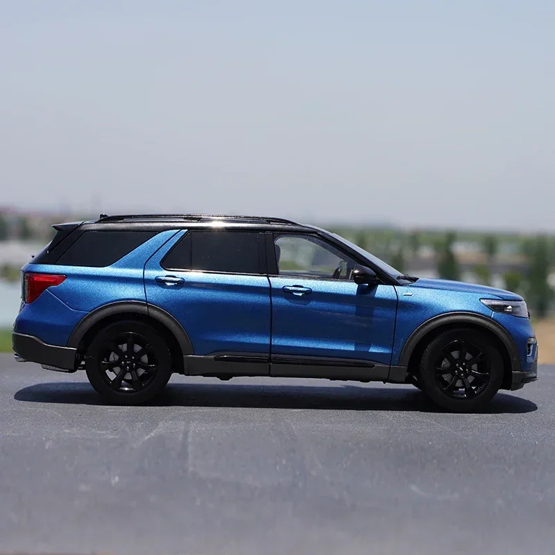 The 1:18 New Ford Explorer 2021 6th Generation SUV Alloy Diecast Model Toy Car is a stunning addition to any collection. With its vibrant blue finish and glossy surface, it immediately catches the eye and radiates quality. Constructed from a durable die-cast metal body with plastic parts, this model features intricate details including a prominent black grille, realistic headlights, and sporty black alloy wheels. Enjoy the interactive aspects of this model—open the trunk and doors, while the four wheels allow for smooth rotation. Perfect for display, you'll find yourself showcasing this striking model as a centerpiece in your collection.