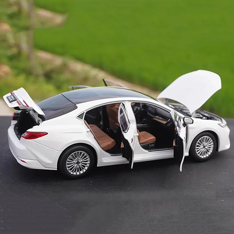 Experience the craftsmanship of this 1:18 scale alloy model of the 9th generation Guangqi Camry 2024, measuring approximately 25cm in length, 10cm in width, and 9cm in height. Featuring a sleek, modern design with a white finish, it showcases realistic details including functional doors, a sliding front seat, an openable hood and trunk, and meticulously crafted interior plush upholstery. The model also has foldable rearview mirrors and a turnable steering wheel for front wheel control, capturing the vehicle’s aerodynamic silhouette with sharp LED-style headlights and multi-spoke alloy wheels. Perfect for collectors aged 14 and above, it embodies high-quality craftsmanship and attention to detail.