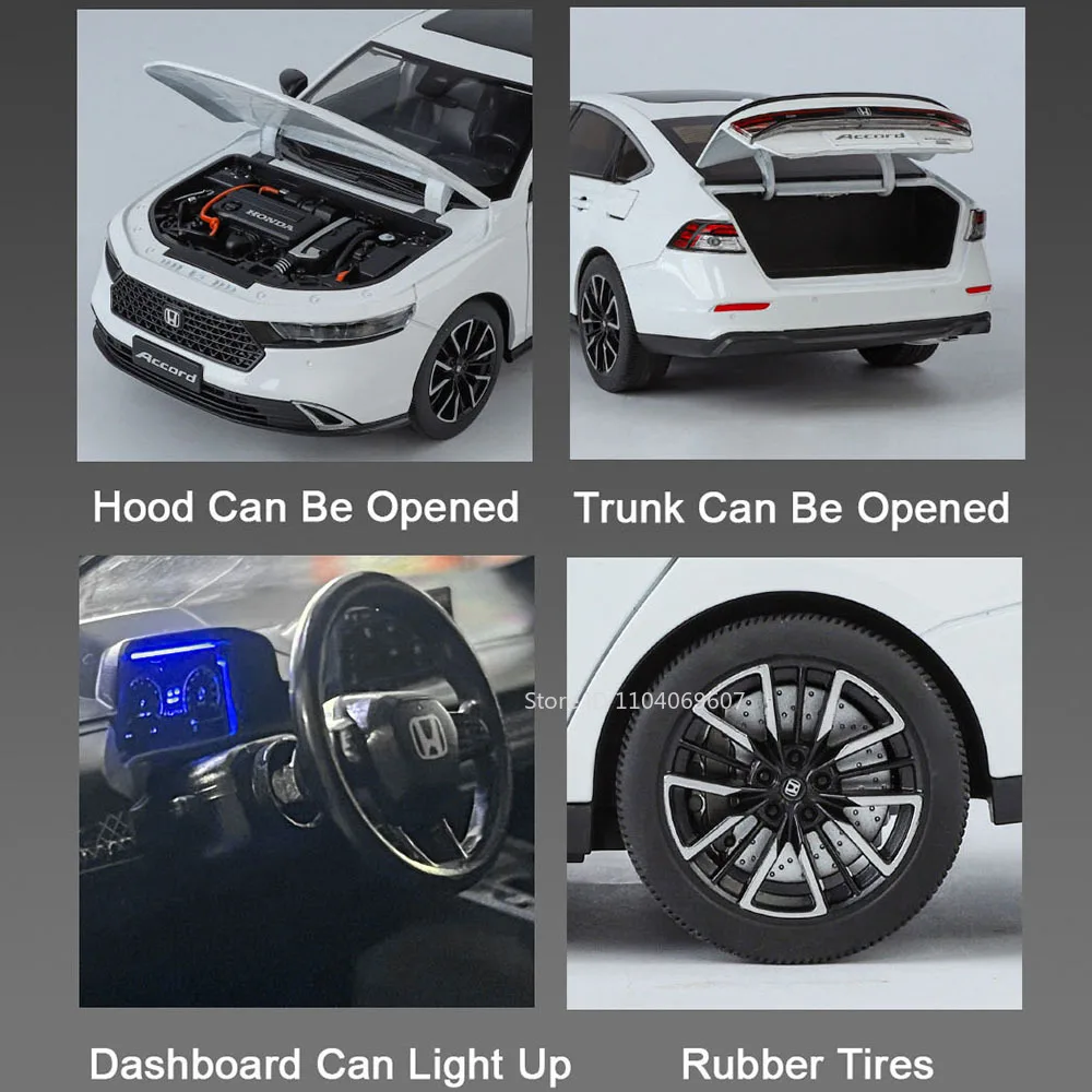 Envision yourself proudly displaying this meticulously crafted miniature Honda Accord on your desk or shelf, adding a touch of elegance and realism to your collection. Its detailed features, combined with interactive sound and light functions, make it not just a model but an engaging experience. Whether for personal enjoyment or as a thoughtful gift for a car enthusiast, this model offers quality, authenticity, and durability. Don't miss out on owning this exceptional piece—bring home the perfect blend of craftsmanship and realism today and elevate your collection to the next level.