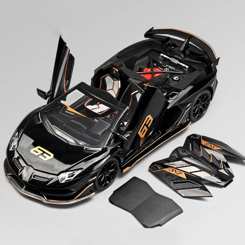 Imagine adding this luxurious and meticulously detailed miniature to your collection. Its stunning design and authentic features will impress any car enthusiast or collector. Display it proudly, and let it inspire admiration from friends and visitors alike. With its realistic sound, lighting, and functional scissor doors, it truly feels alive. Don’t miss the opportunity to own this exceptional model—enhance your collection today and enjoy the craftsmanship and elegance of a Lamborghini SVJ63 Aventador in your own space.