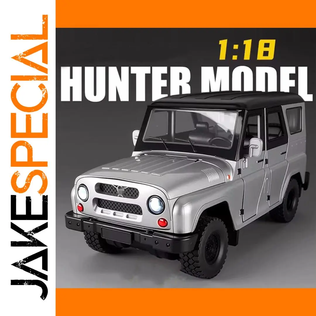 Experience the realism of these 1:18 scale diecast toy cars, crafted from zinc metal bodies with plastic chassis and rugged rubber tires. Available in multiple colors including blue, white, gray, and black, with specific Hunter and LADA 2107 variants. Measuring approximately 23 x 10.8 x 11 cm for the Hunter model and 22.5 x 9.8 x 8.5 cm for the LADA 2107, these high-simulation vehicles feature functional openable doors, light and sound effects, pull-back mechanisms, and durable alloy construction. Batteries are included, making these detailed models perfect for adult collectors seeking an authentic off-road or display piece.