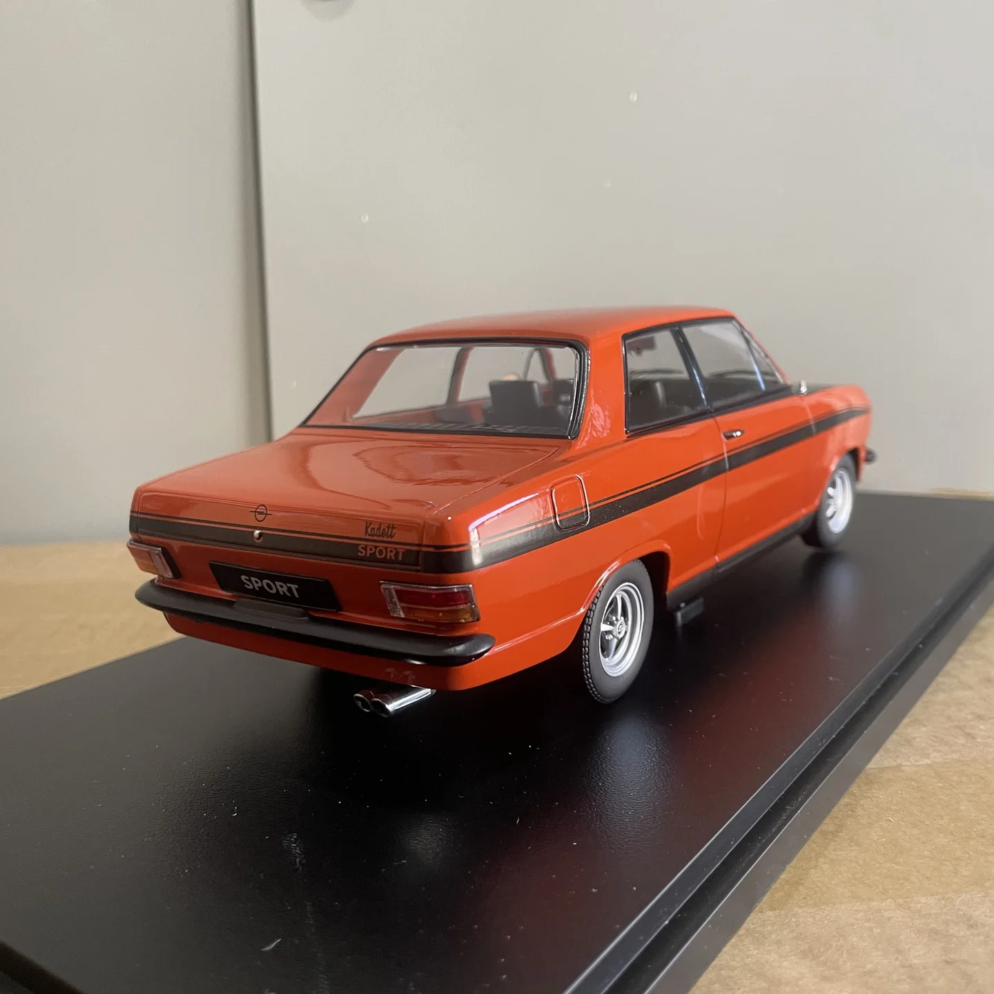 - The black stripe along the sides accentuates the sporty character of the vintage Opel Kadett B Sport 1973, adding visual contrast and dynamic appeal to the model.