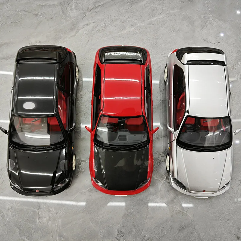 Experience the thrill of owning a precisely crafted 1:18 scale diecast alloy model of the iconic TypeR EK9. This collection brings to life the sporty elegance and sleek aerodynamic design of the original, perfect for enthusiasts and collectors. With its realistic proportions and meticulous detailing, you will feel as if you have a miniature version of the legendary vehicle in your hands. The models are finished in three stunning colors: matte black, vibrant red, and polished silver, each showcasing smooth contours and sharp, clean lines. The transparent windows reveal a detailed red interior, matching the exterior paint. Designed with quality alloy material, these models are durable and exhibit a refined, modern aesthetic that enhances any collection or display space.