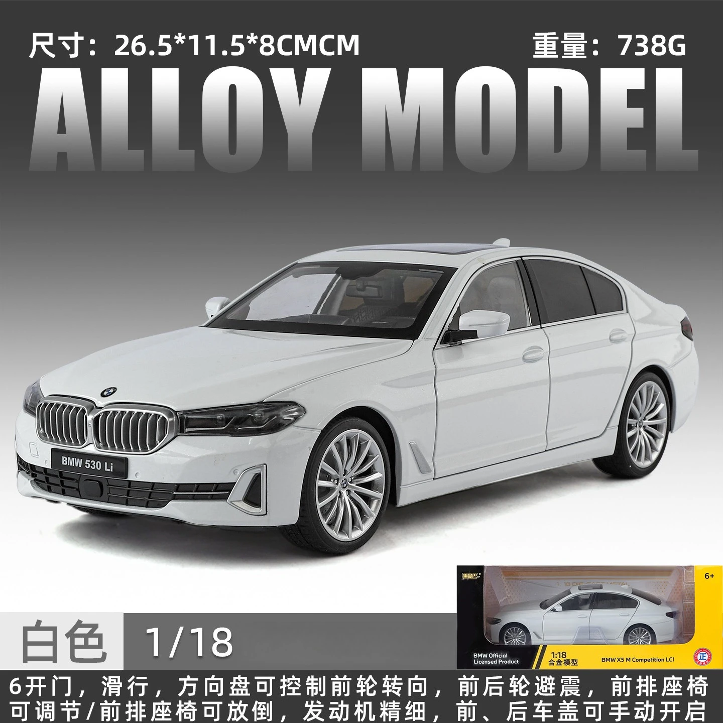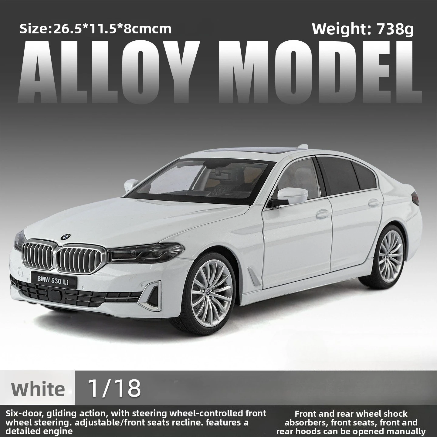 This stunning 1:18 scale model of the BMW 530Li luxury sedan is crafted from durable diecast metal, presenting a sophisticated white exterior with a glossy finish that adds to its refined appearance. The iconic kidney grille with its chrome finish is prominent and pairs beautifully with sleek, LED detailed headlights. Its streamlined shape and smooth contours show off modern luxury design, while detailed five-spoke alloy wheels and shiny silver side mirrors enhance its realistic look. The tinted windows invite you to admire the intricately designed dashboard and seats inside. Perfect as a decorative piece or a unique gift, this model promises to impress any enthusiast.